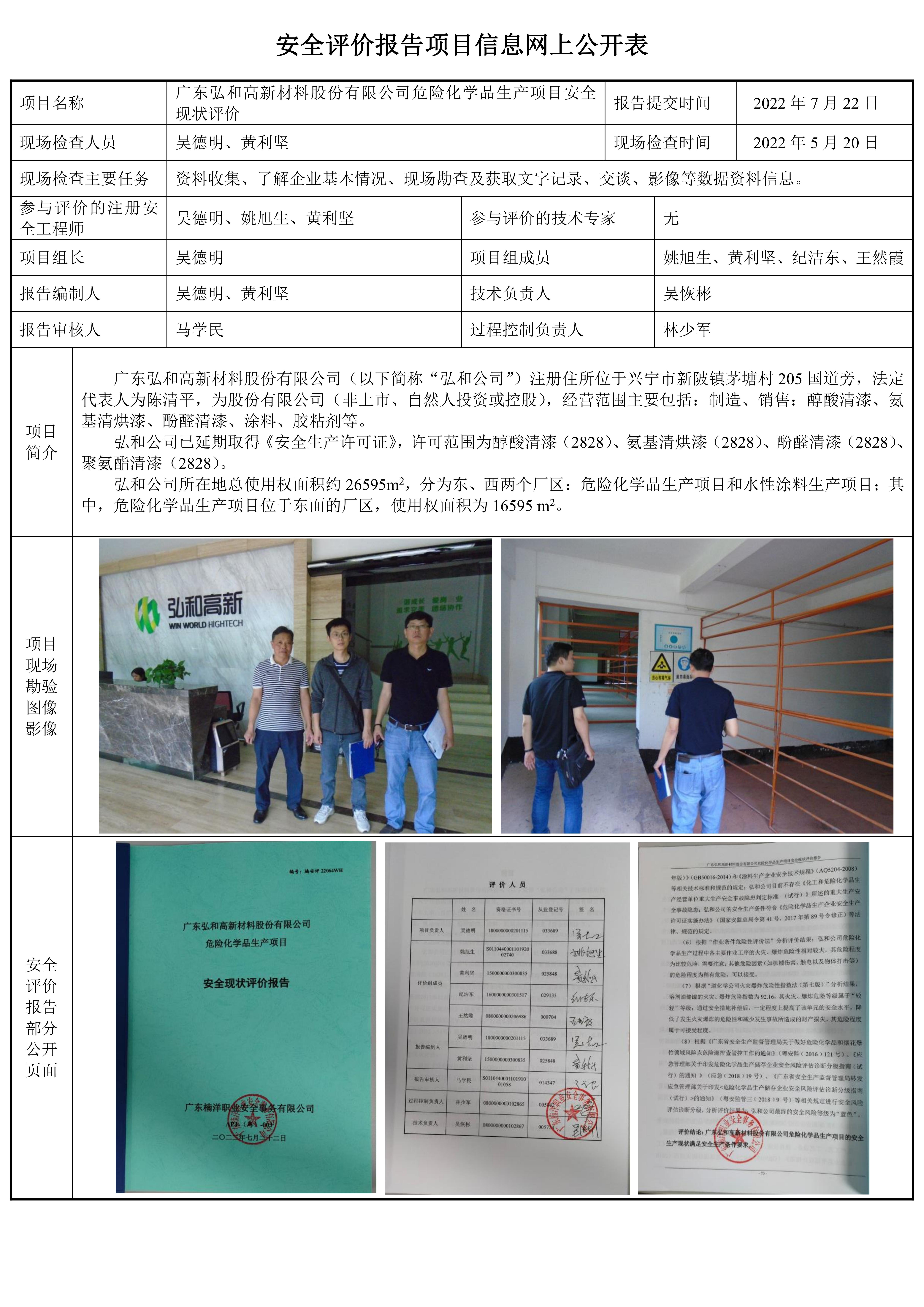 广东弘和高新材料股份有限公司危险化学品生产项目安全现状评价报告