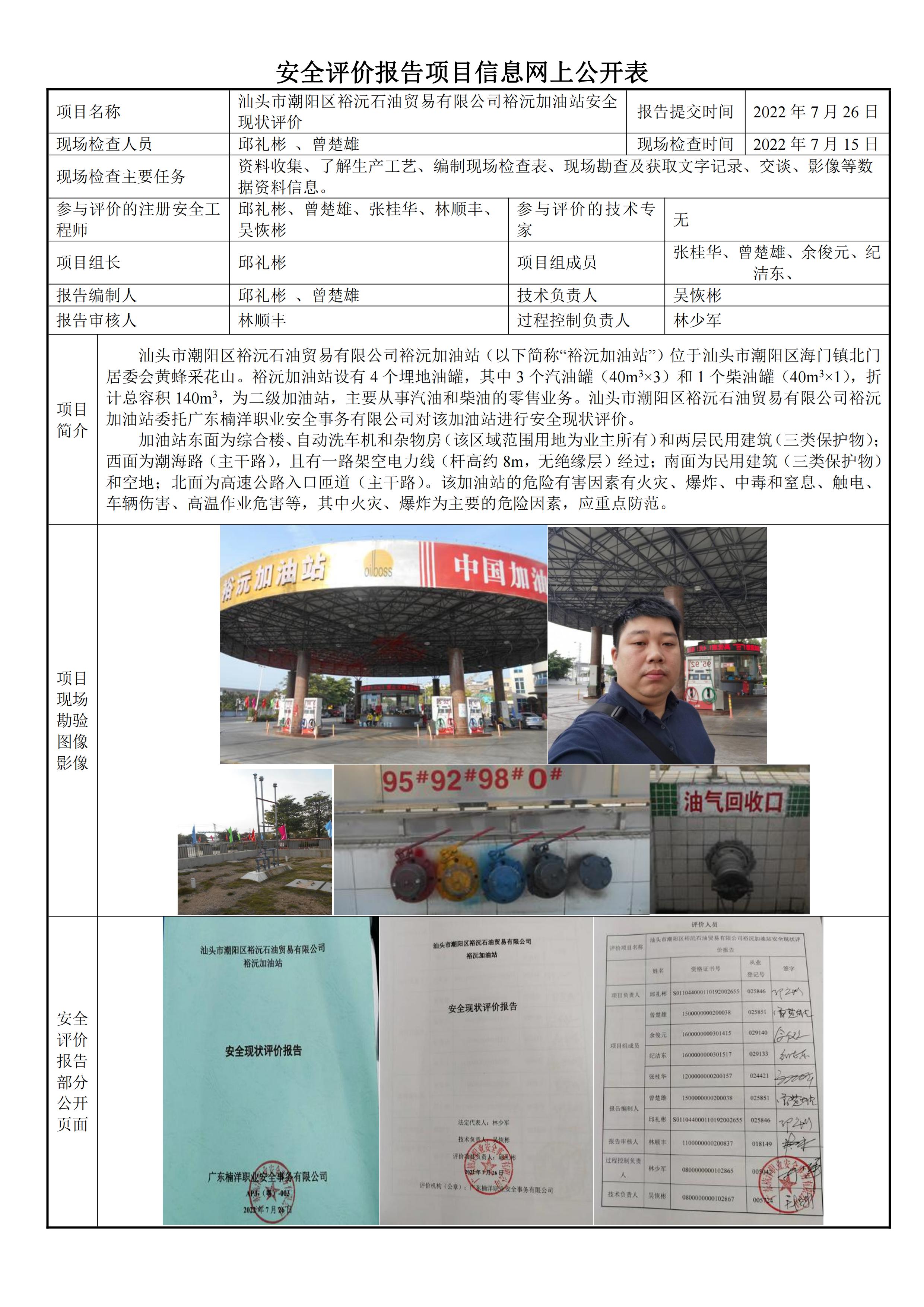 汕头市潮阳区裕沅石油贸易有限公司裕沅加油站安全现状评价报告