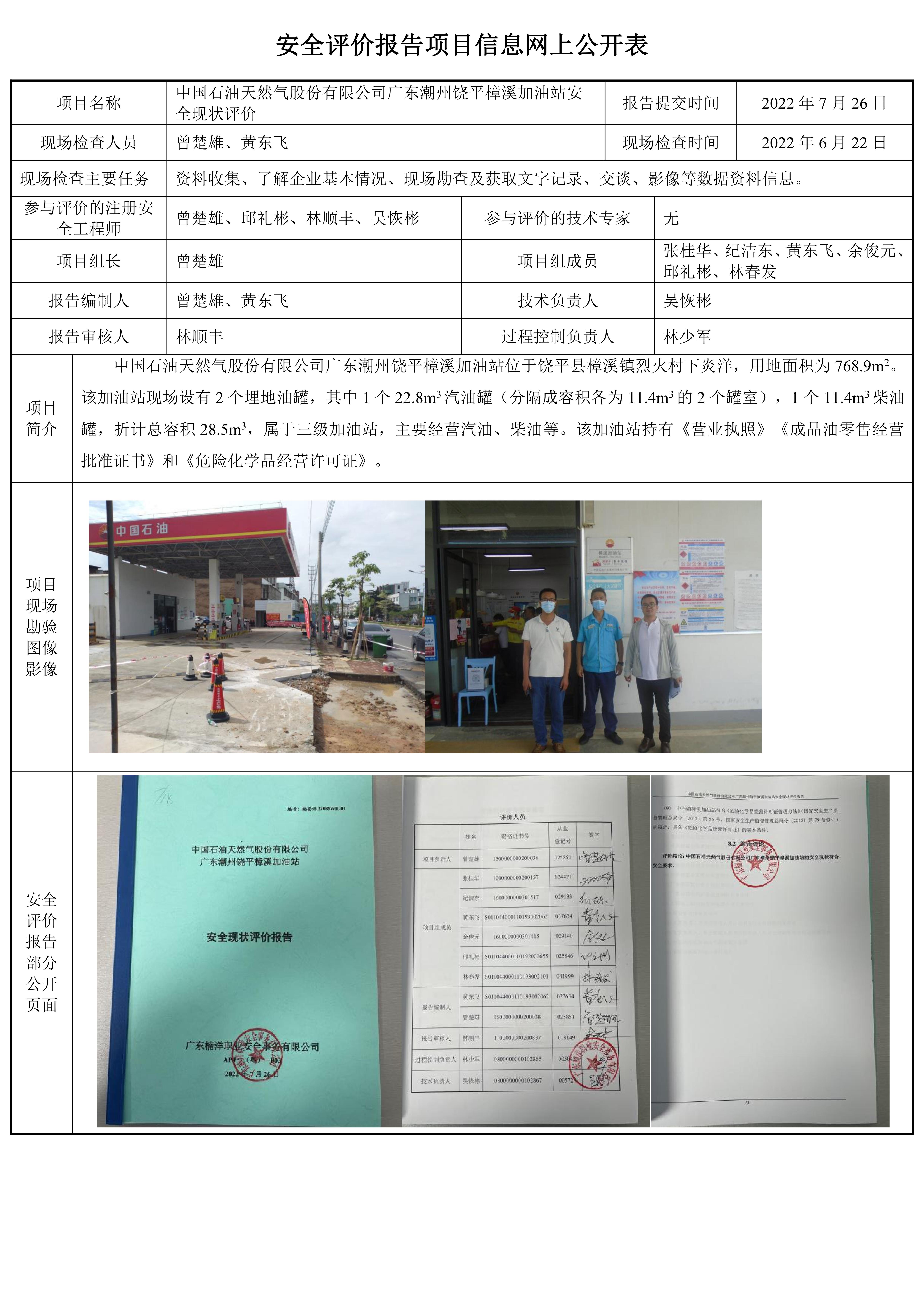 中国石油天然气股份有限公司广东潮州饶平樟溪加油站安全现状评价报告