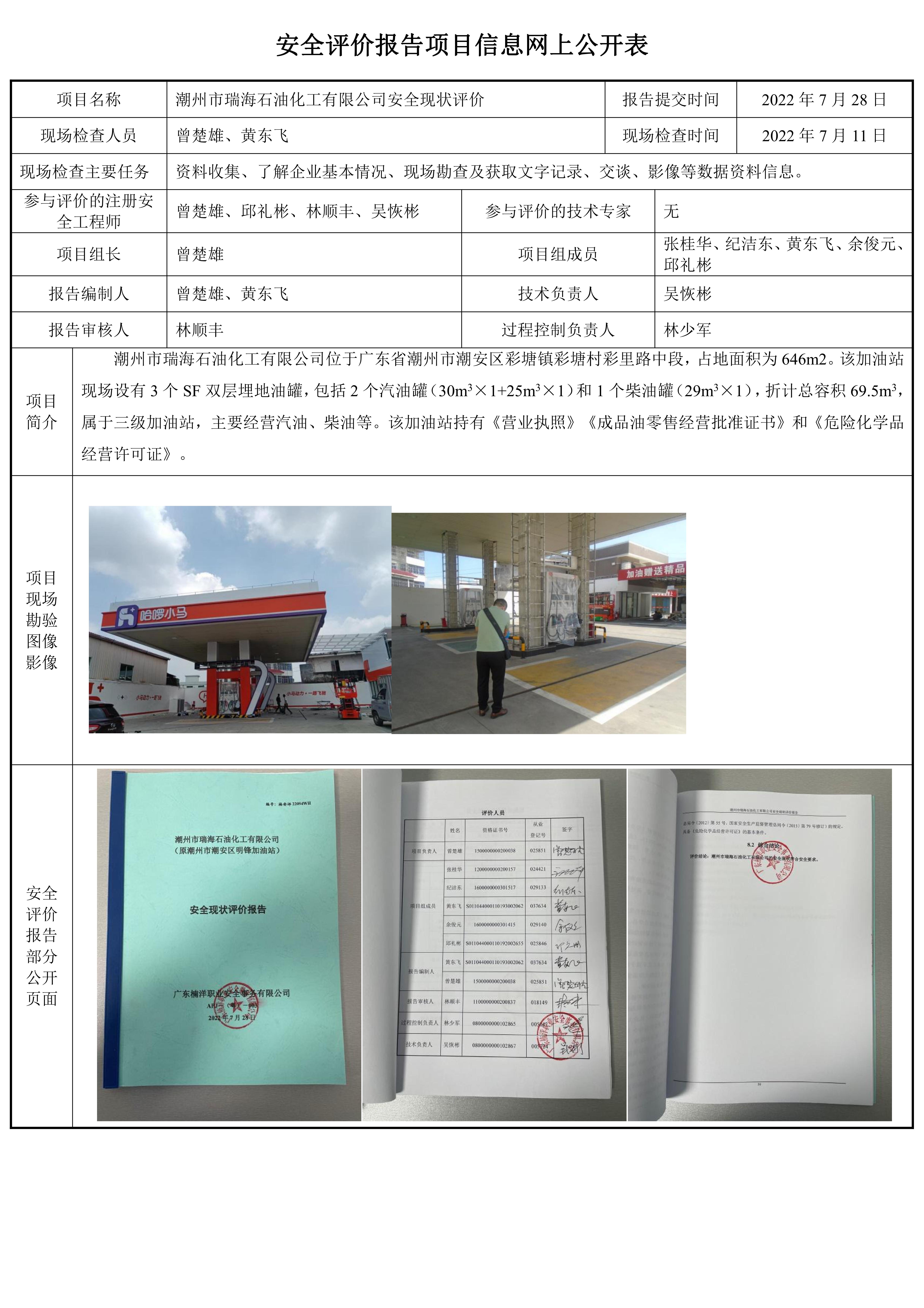 潮州市瑞海石油化工有限公司安全现状评价报告