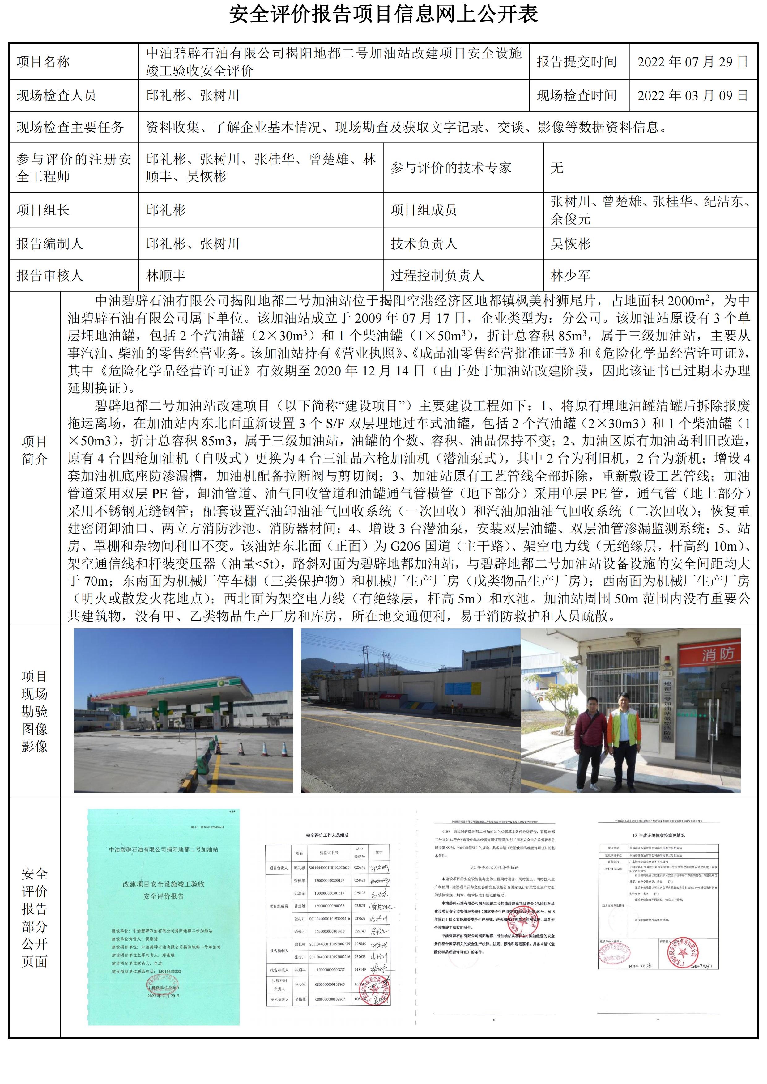 中油碧辟石油有限公司揭阳地都二号加油站改建项目安全设施竣工验收安全评价报告