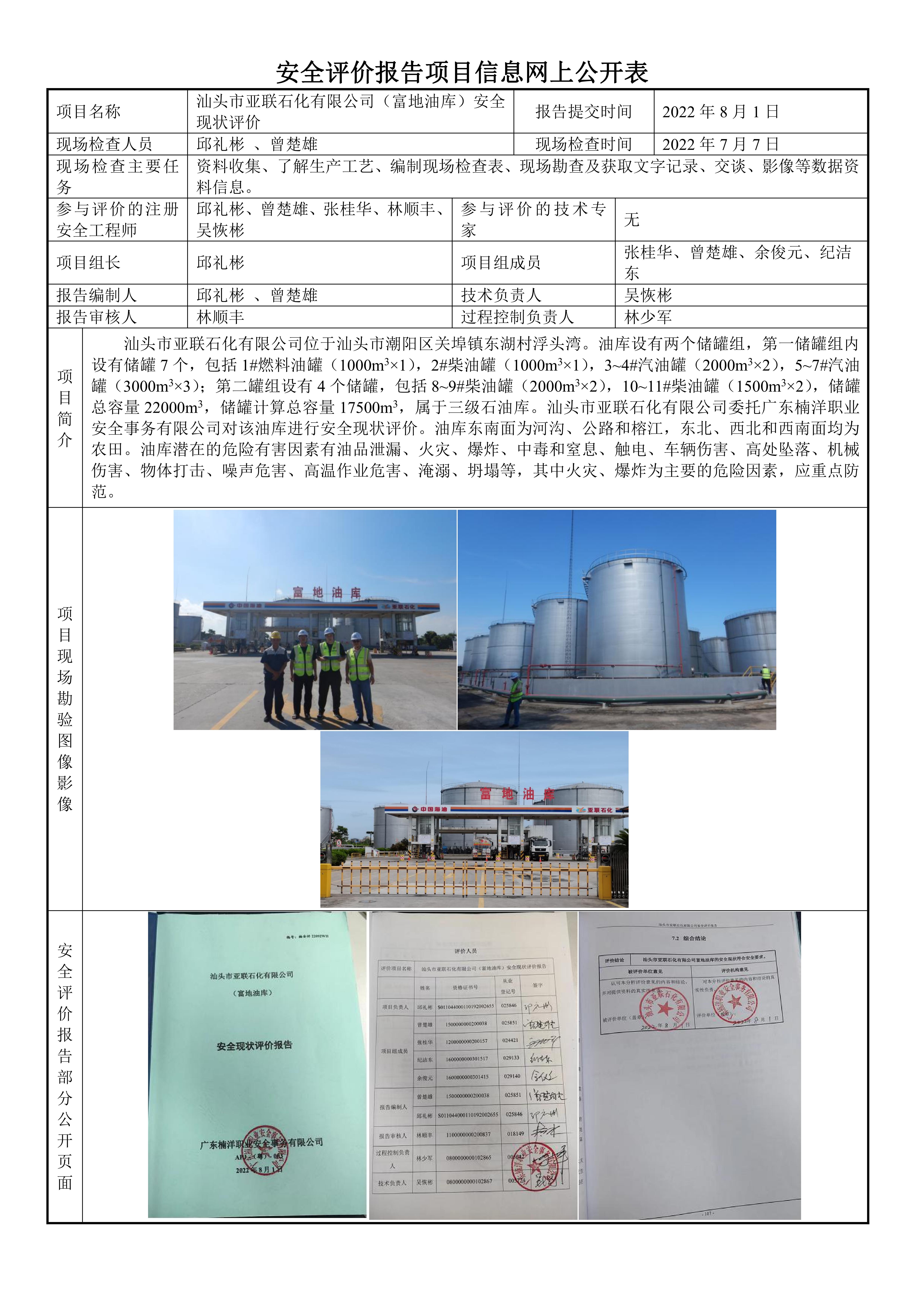 汕头市亚联石化有限公司(富地油库)安全现状评价报告