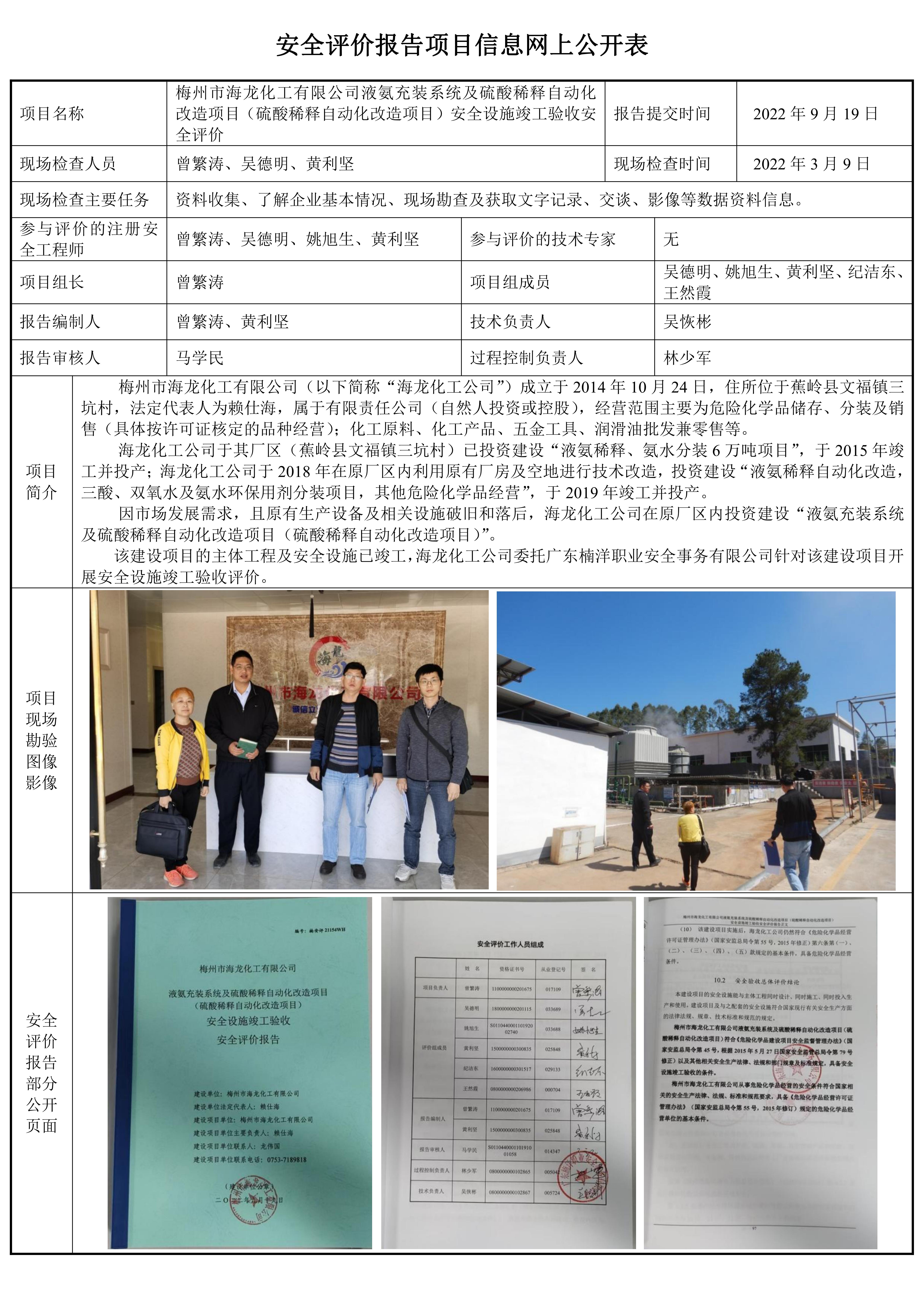 梅州市海龙化工有限公司液氨充装系统及硫酸稀释自动化改造项目(硫酸稀释自动化改造项目)安全设施竣工验收安全评价报告