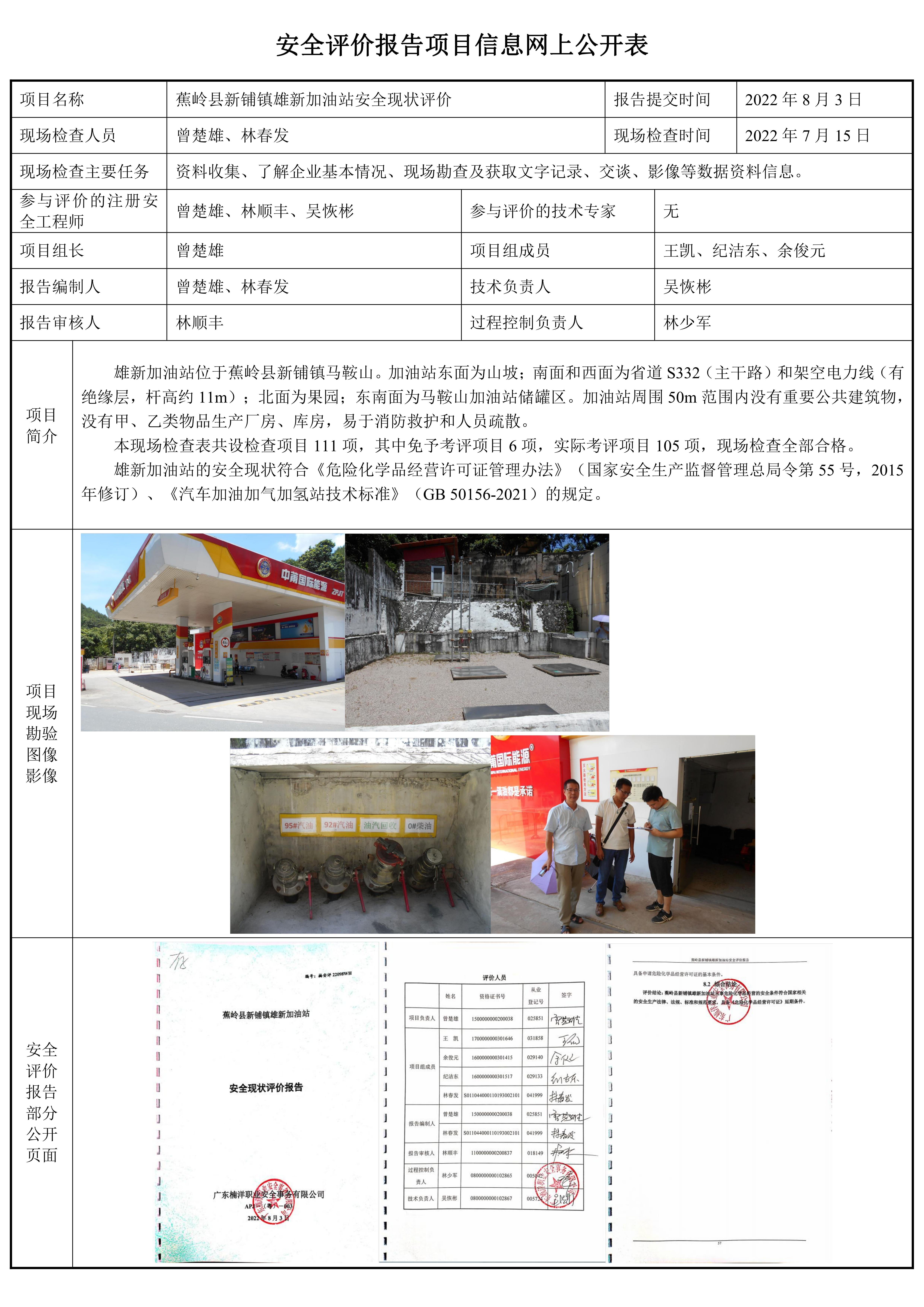 蕉岭县新铺镇雄新加油站安全现状评价报告
