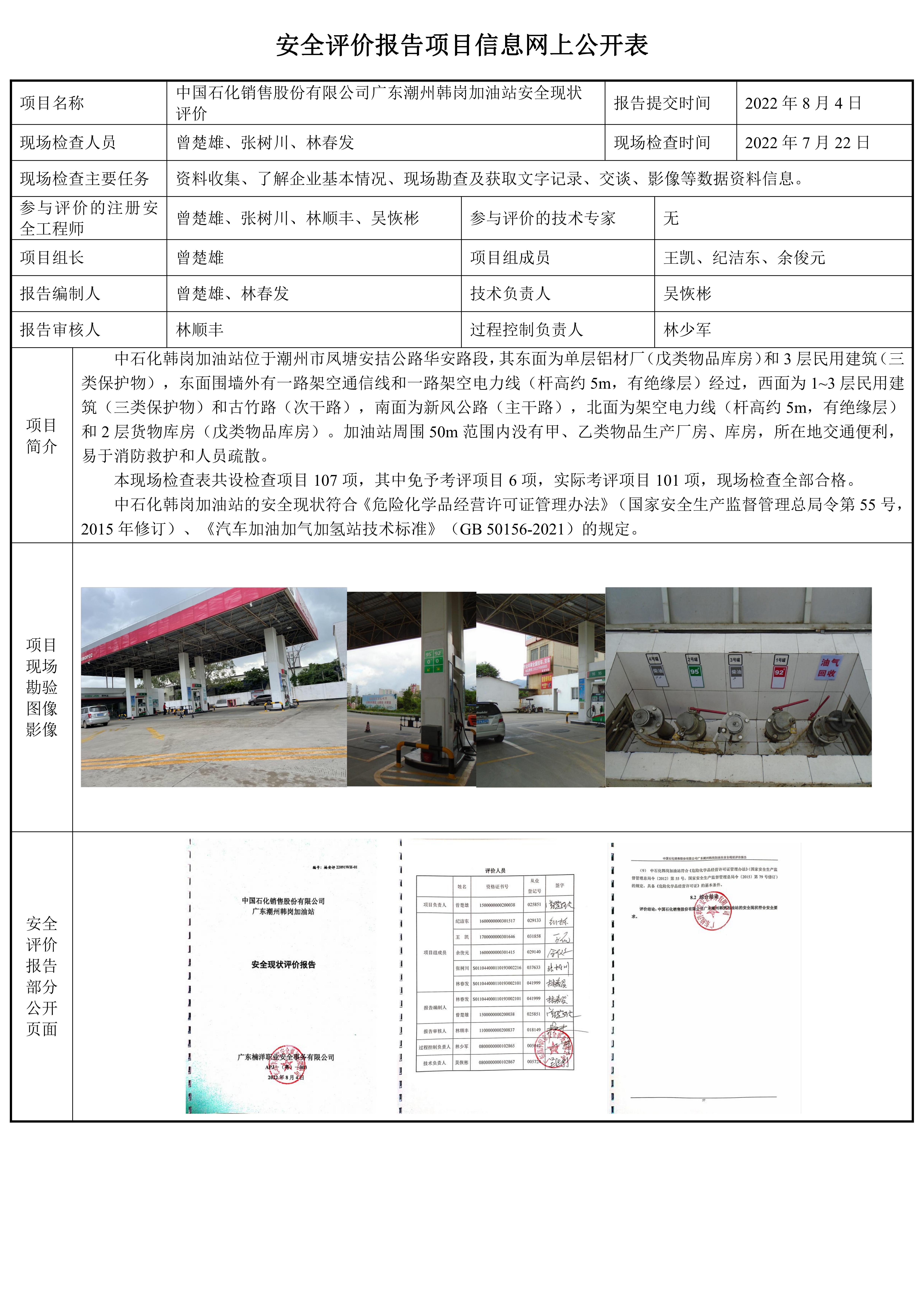 中国石化销售股份有限公司广东潮州韩岗加油站安全现状评价报告
