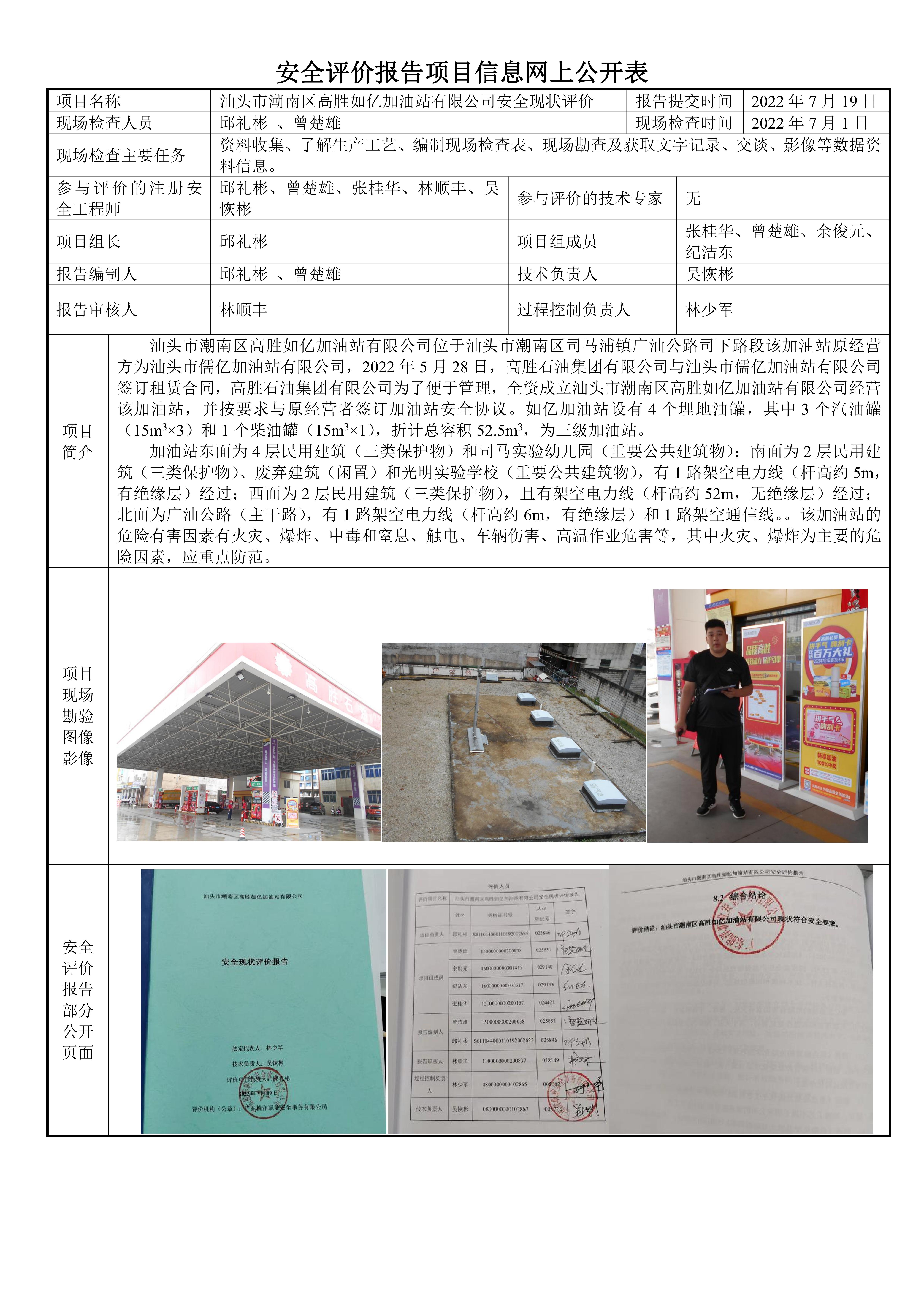 汕头市潮南区高胜如亿加油站有限公司安全现状评价报告
