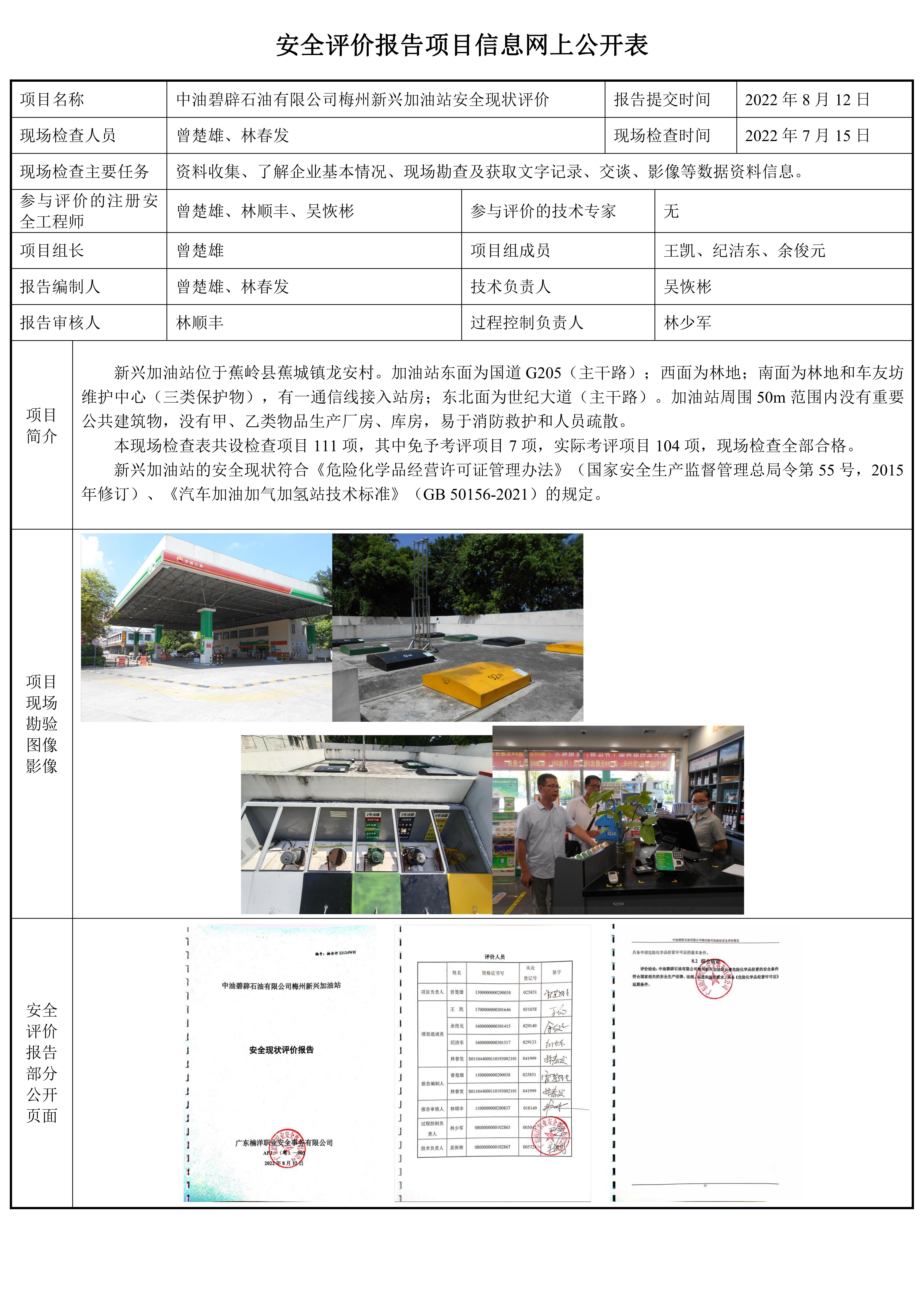 中油碧辟石油有限公司梅州新兴加油站安全现状评价报告