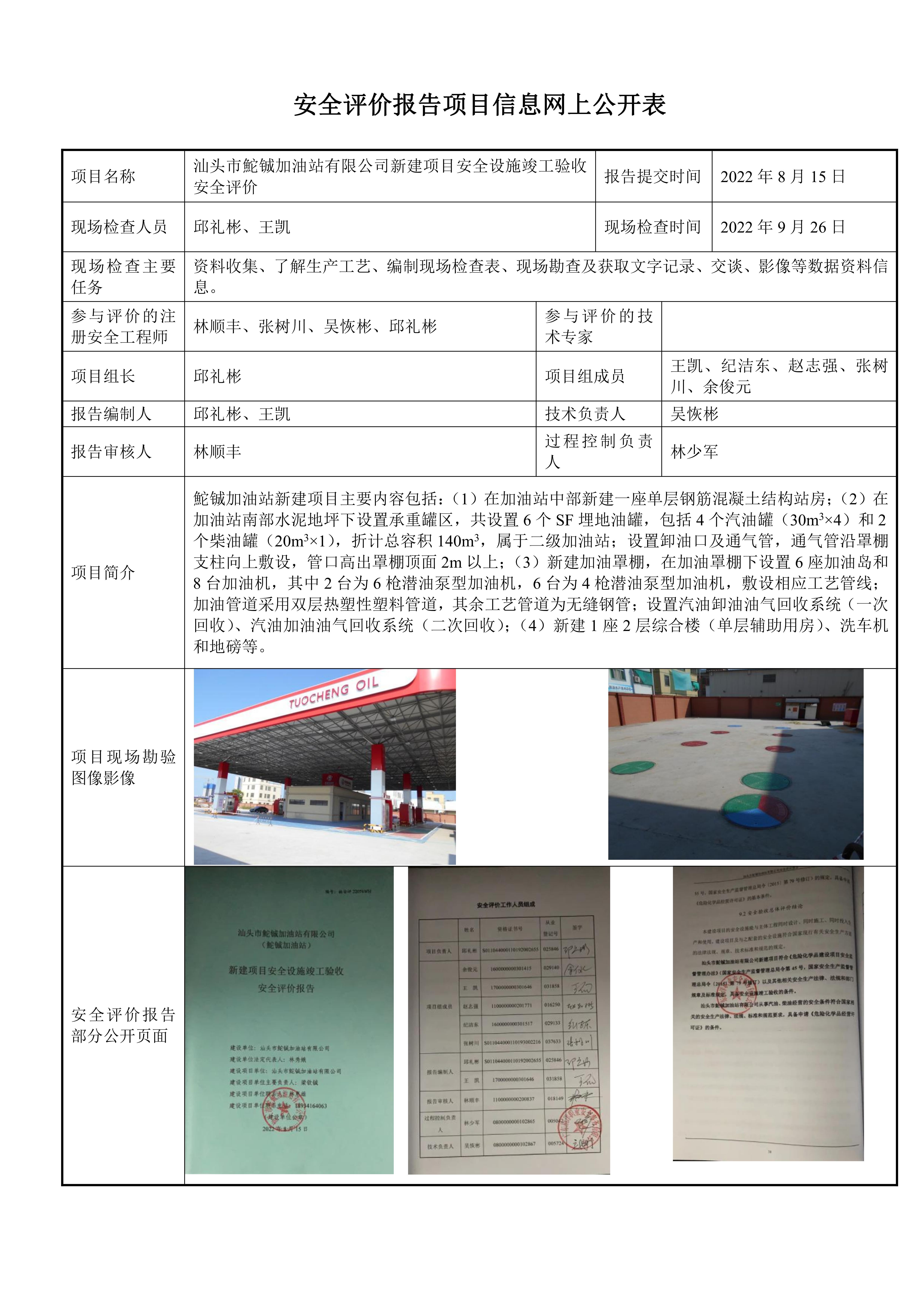 汕头市鮀铖加油站有限公司(鮀铖加油站) 新建项目安全设施竣工验收安全评价报告