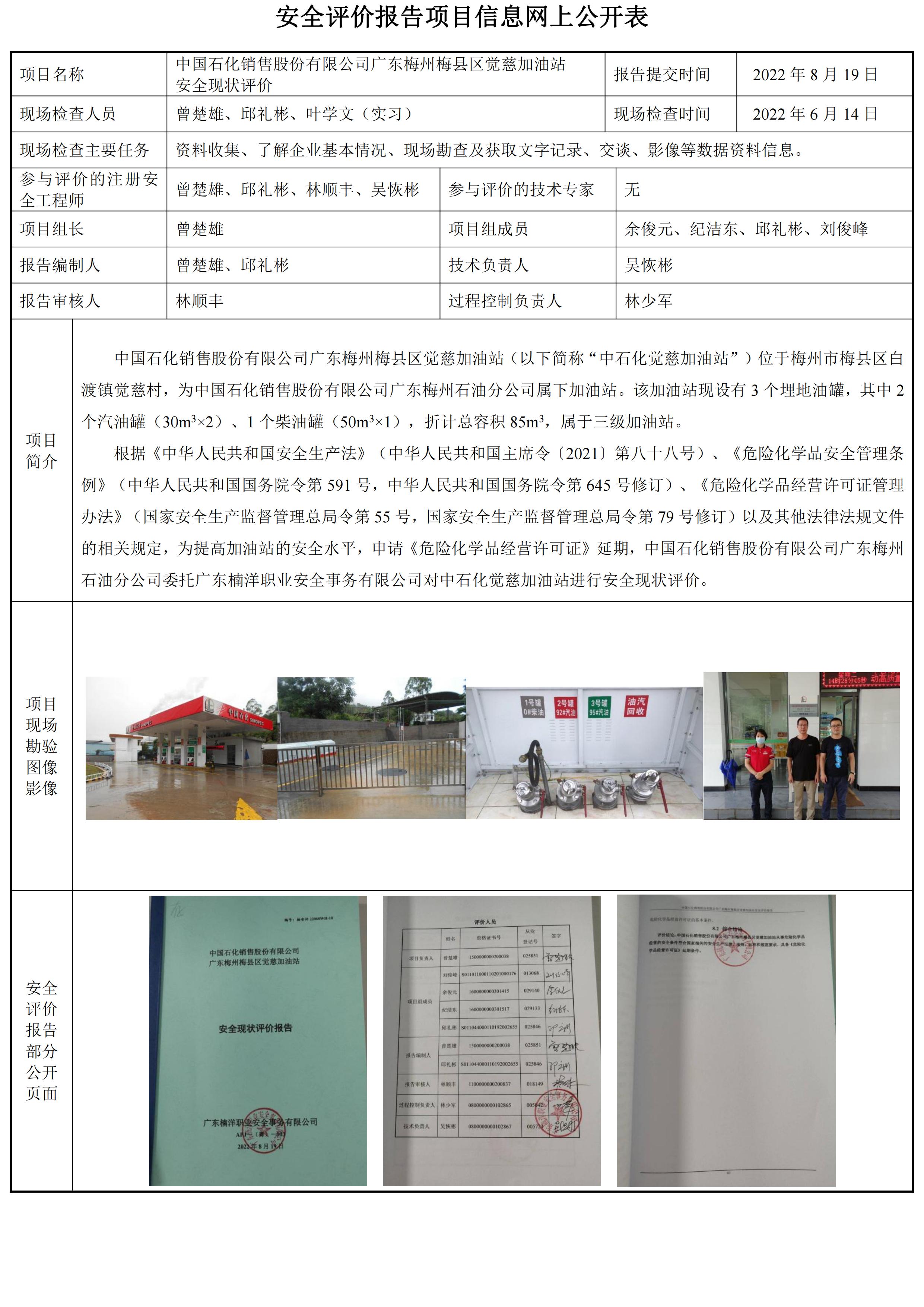 中国石化销售股份有限公司广东梅州梅县区觉慈加油站安全现状评价报告