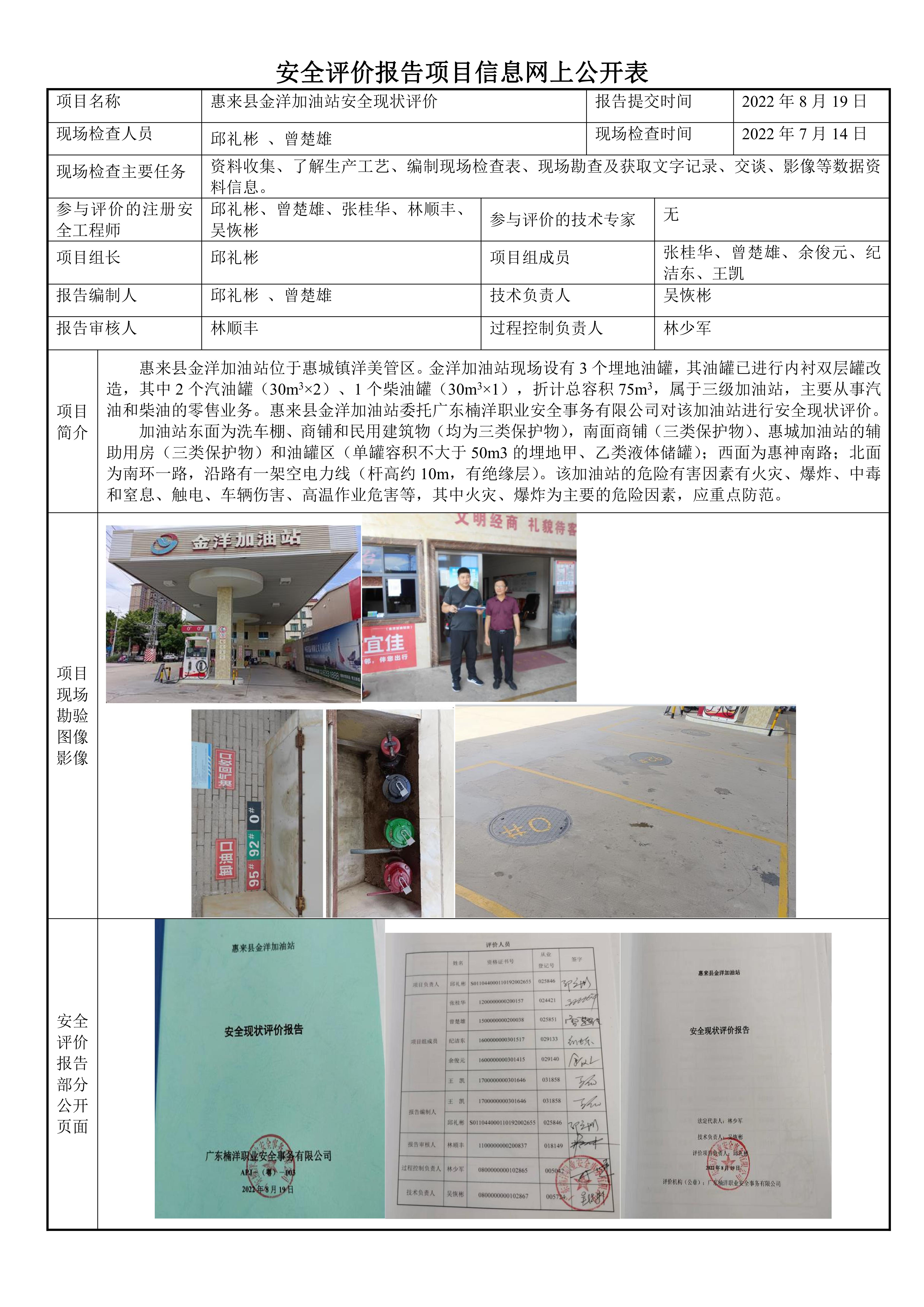 惠来县金洋加油站安全现状评价报告