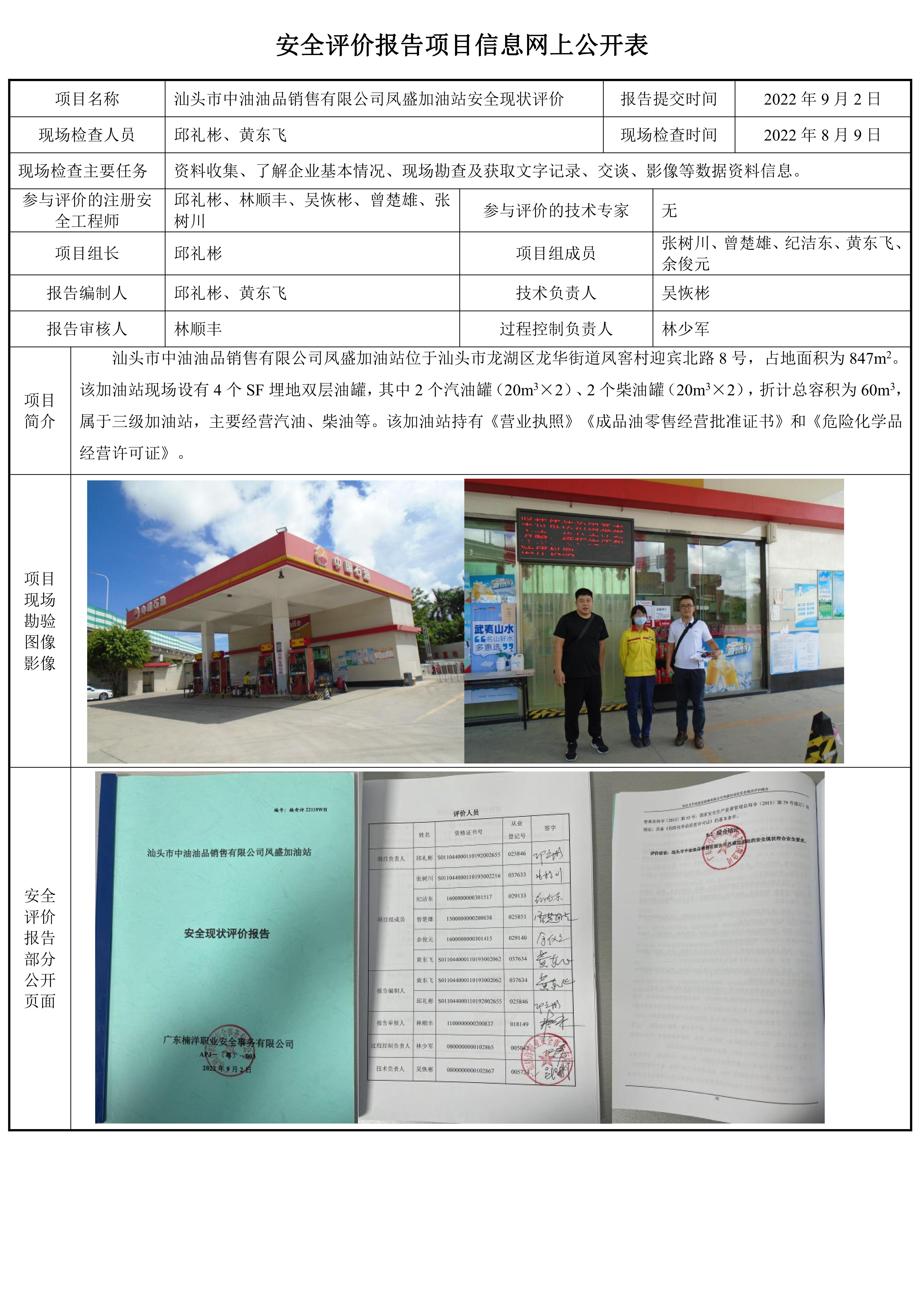 汕头市中油油品销售有限公司凤盛加油站安全现状评价报告