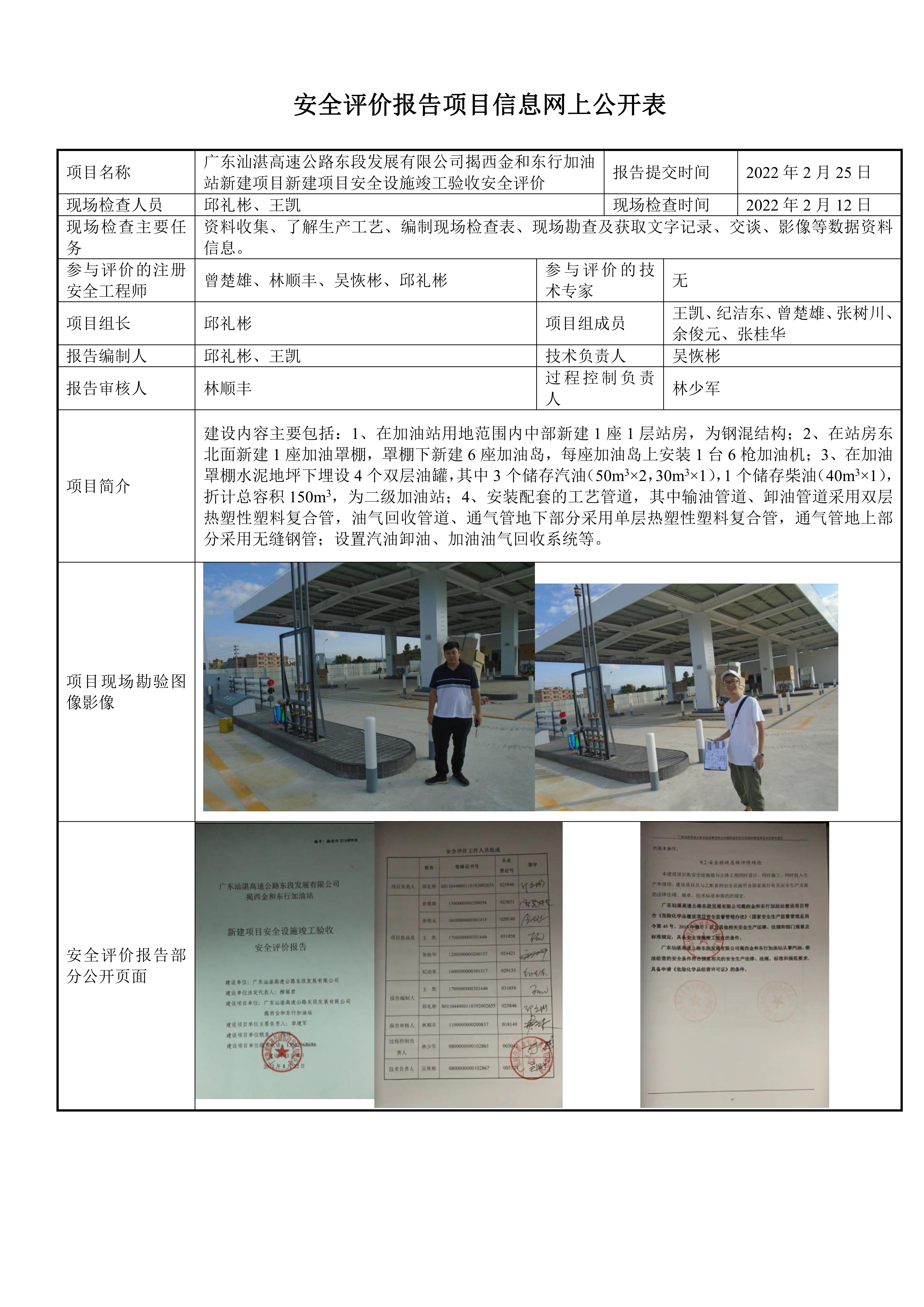 广东汕湛高速公路东段发展有限公司揭西金和东行加油站新建项目安全设施竣工验收安全评价报告
