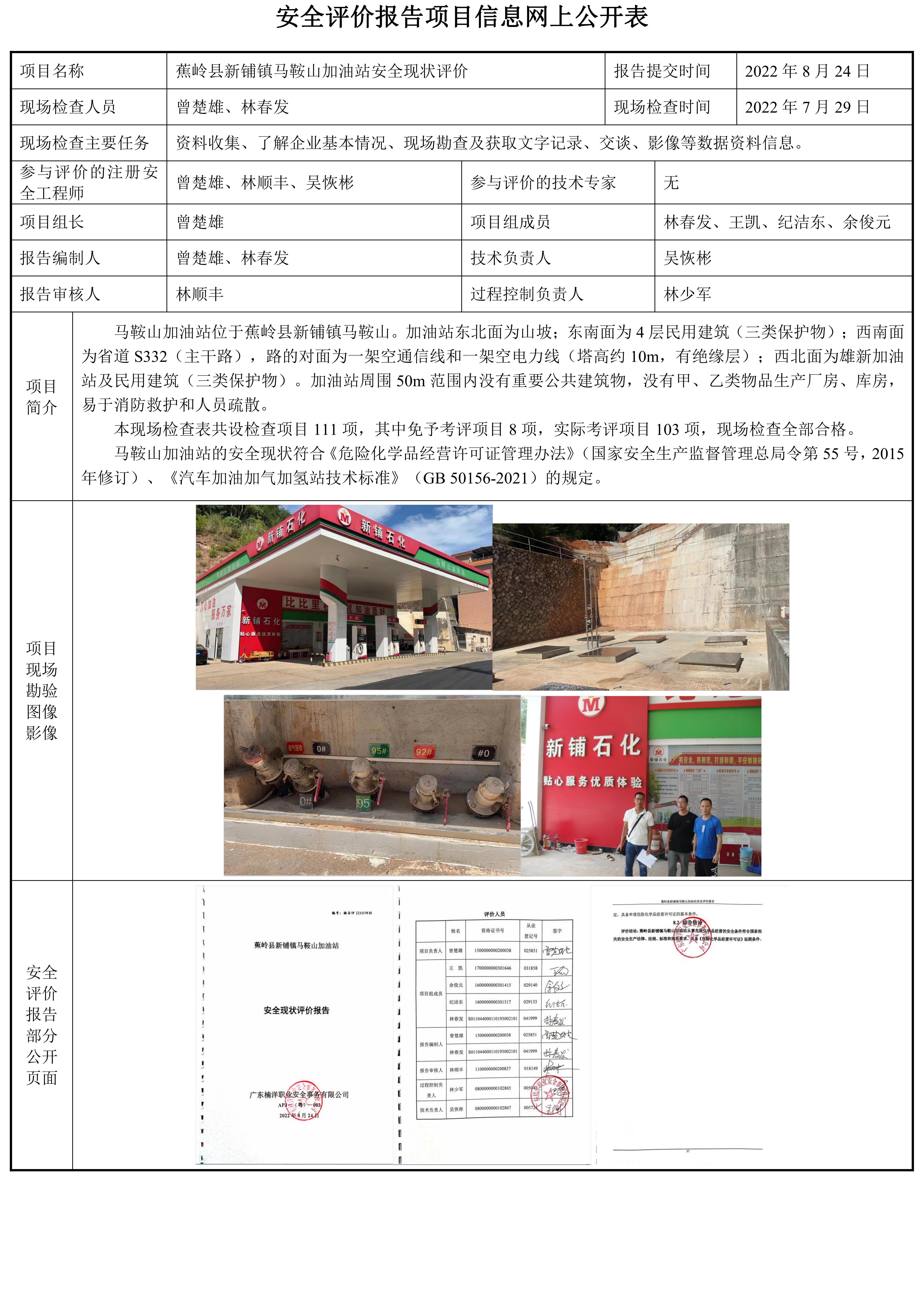 蕉岭县新铺镇马鞍山加油站安全现状评价报告