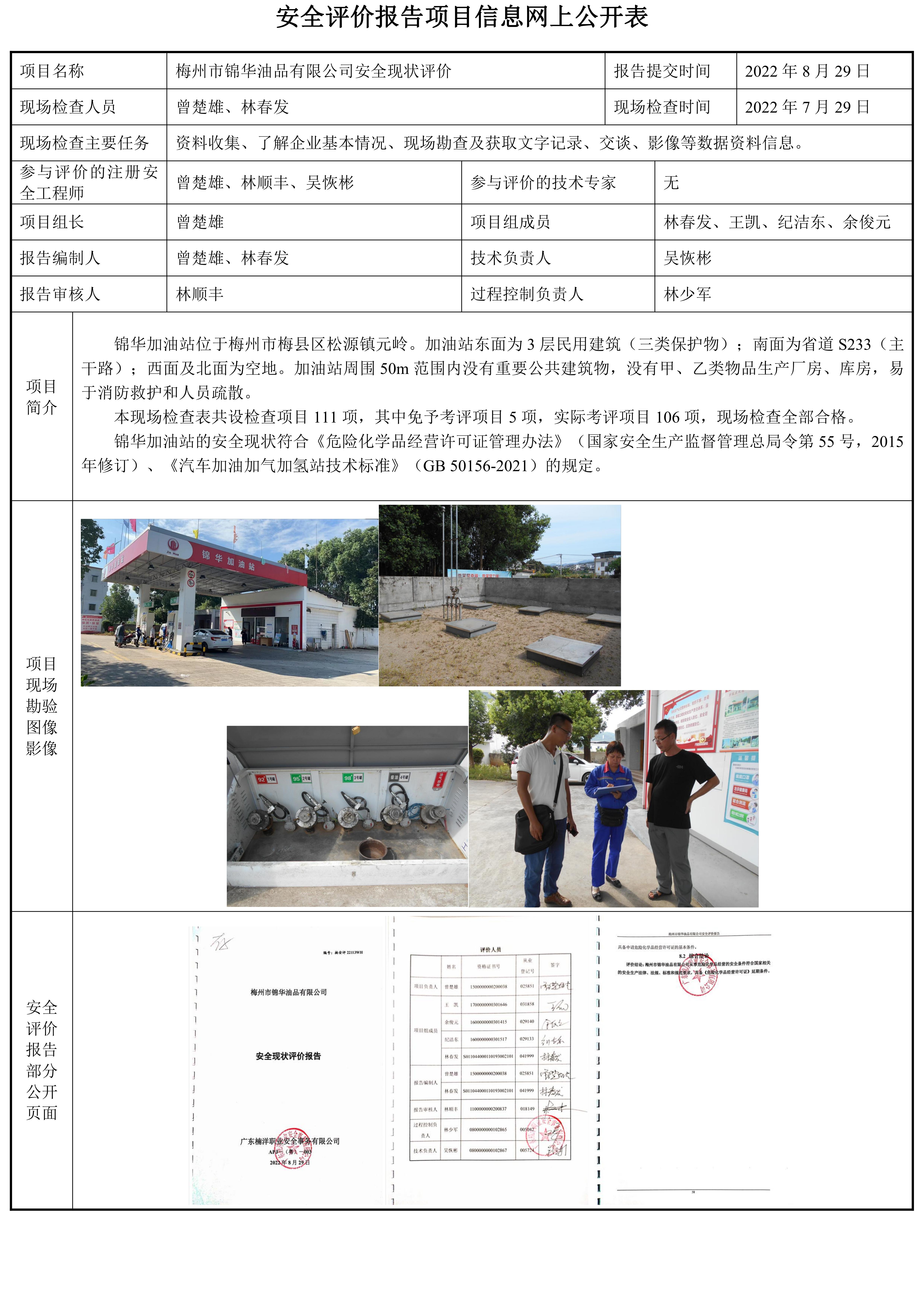 梅州市锦华油品有限公司安全现状评价报告
