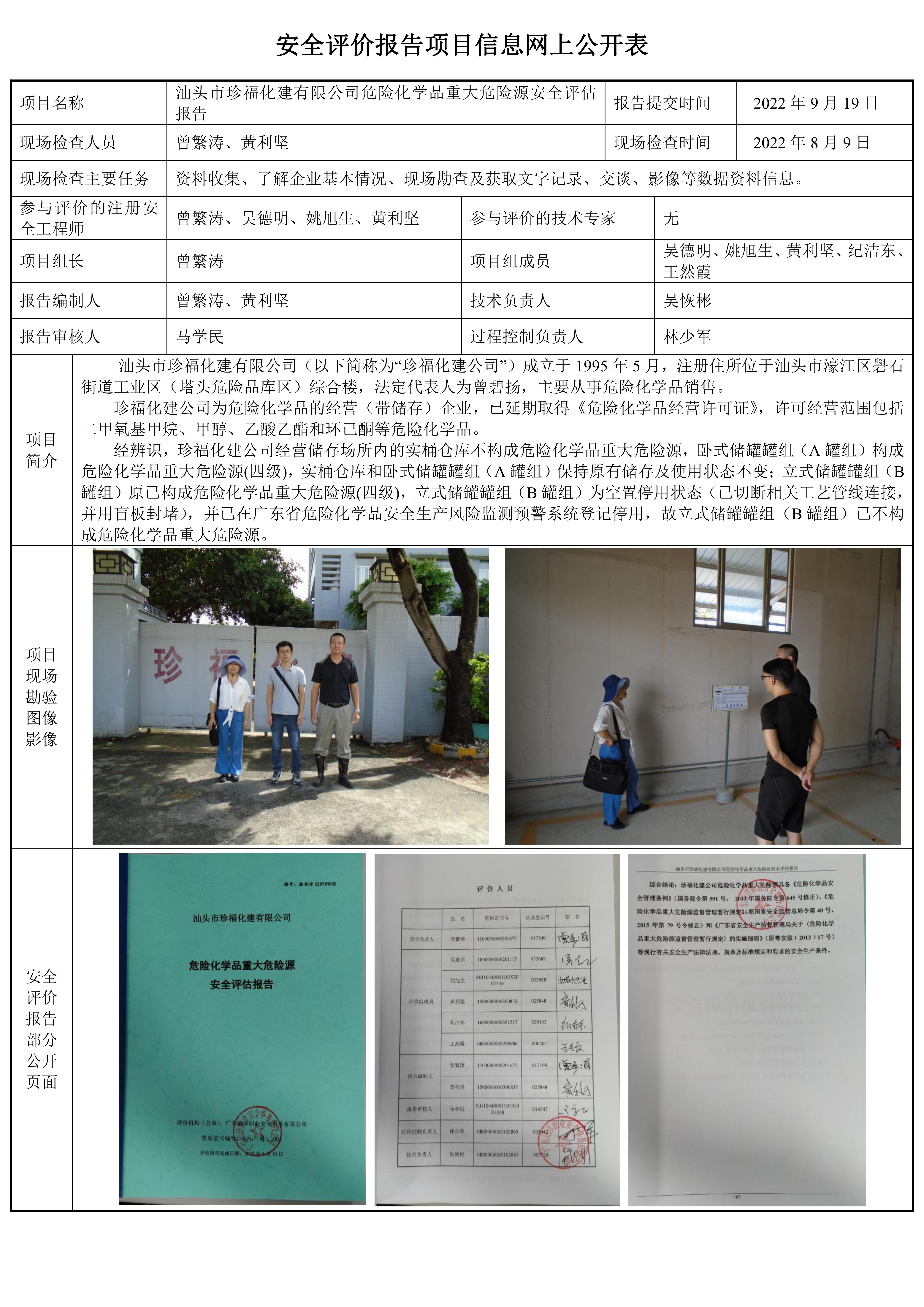 汕头市珍福化建有限公司危险化学品重大危险源安全评估报告