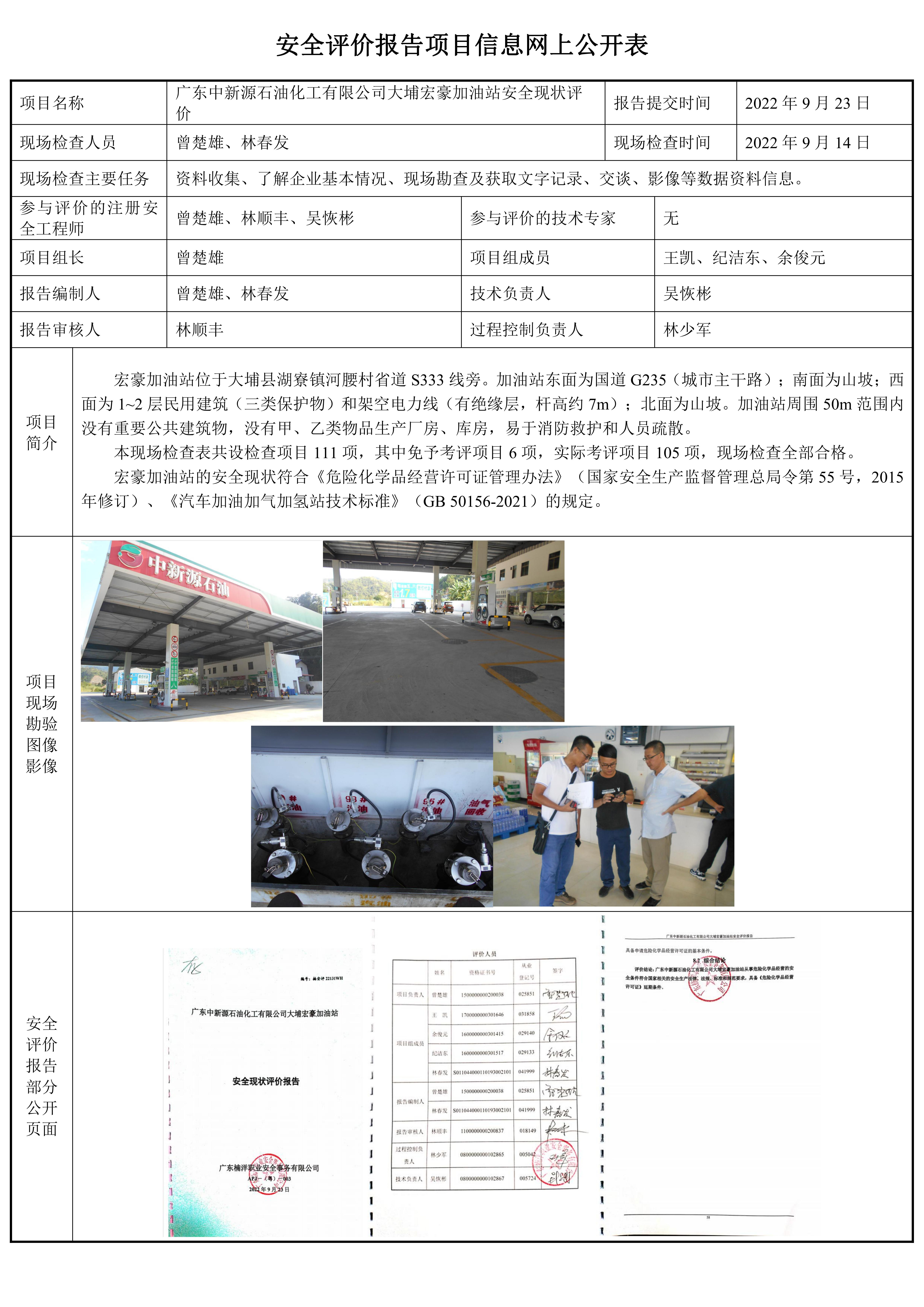 广东中新源石油化工有限公司大埔宏豪加油站安全现状评价报告