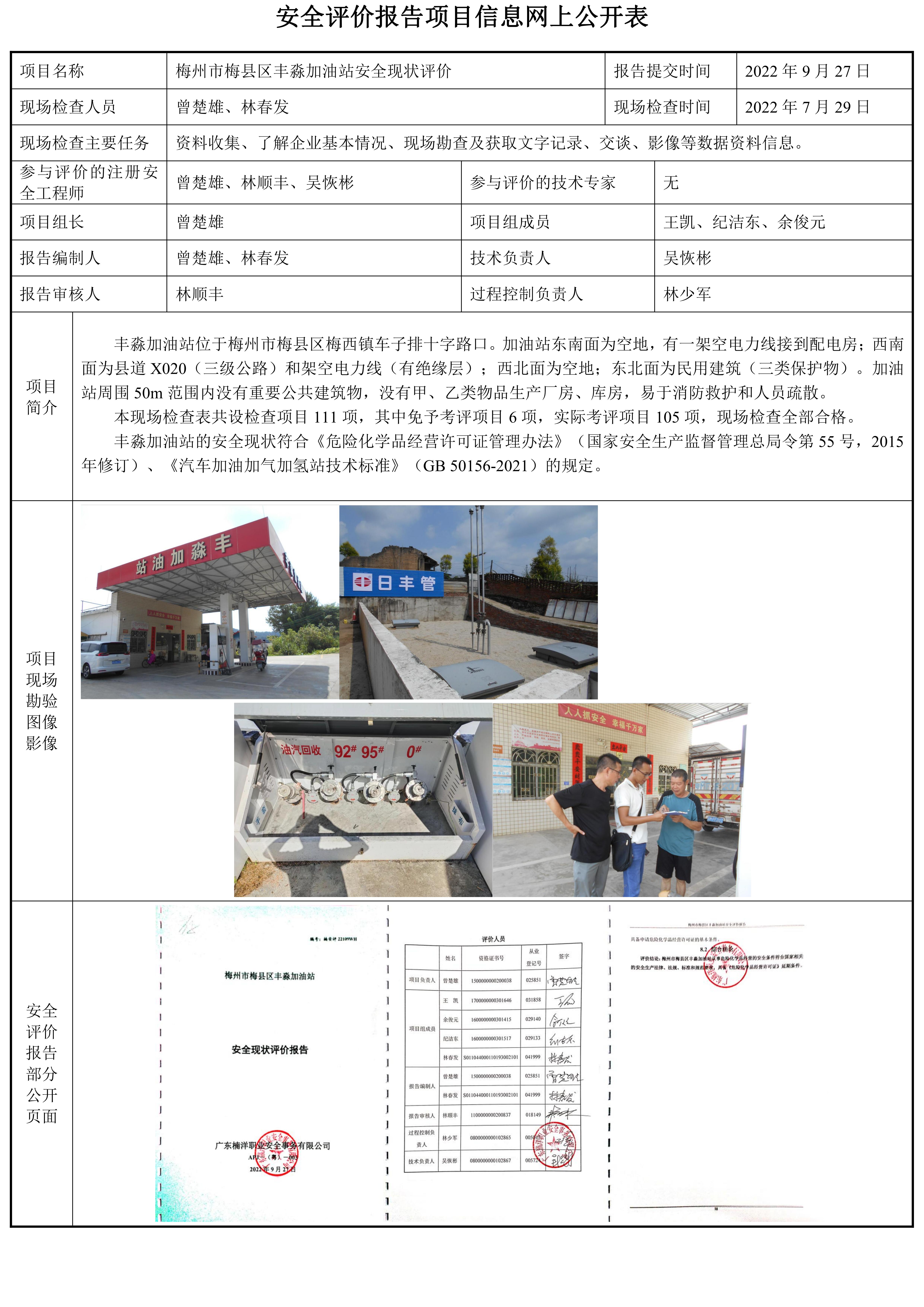 广东中新源石油化工有限公司大埔宏豪加油站安全现状评价报告