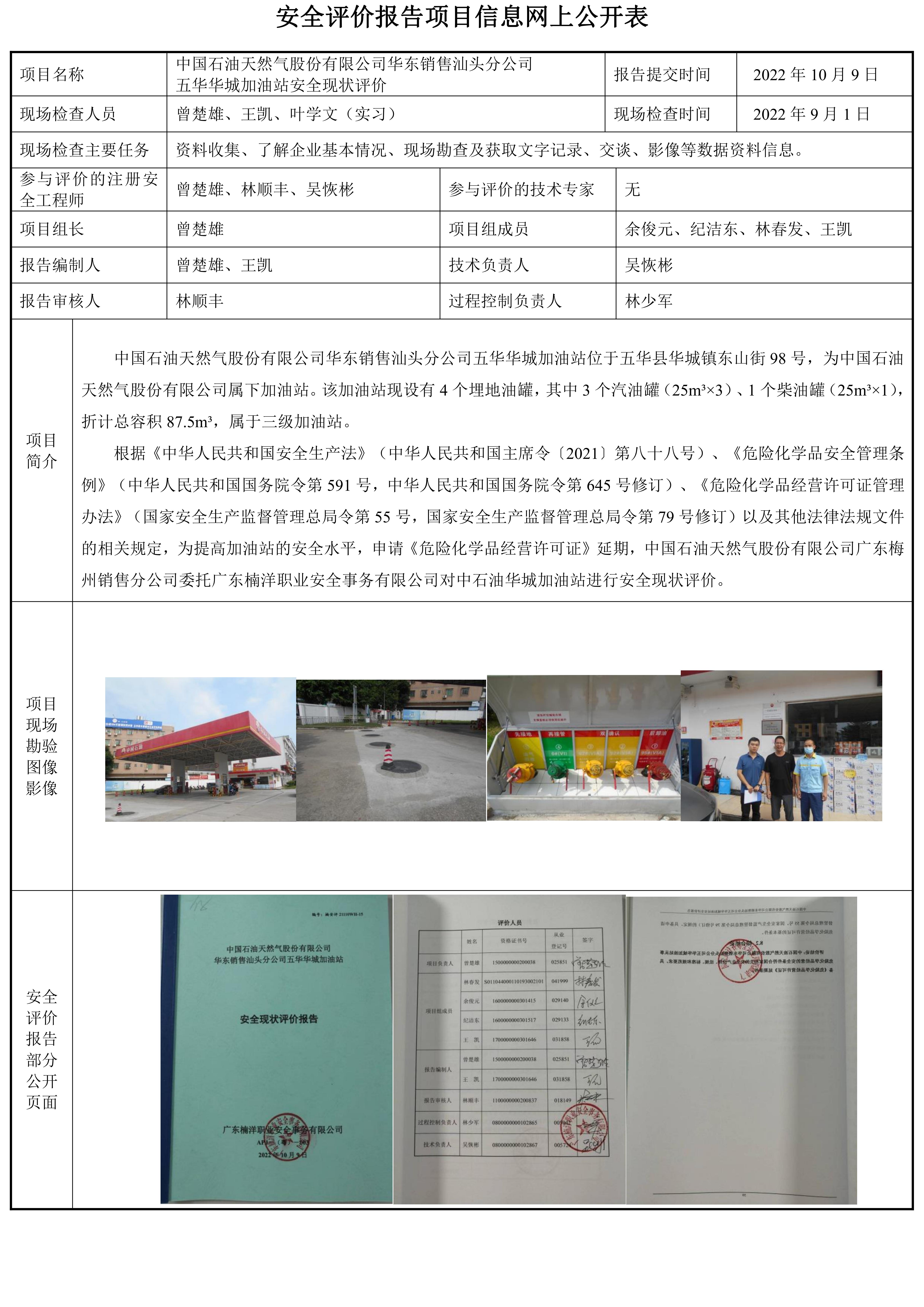 中国石油天然气股份有限公司华东销售汕头分公司五华华城加油站安全现状评价报告