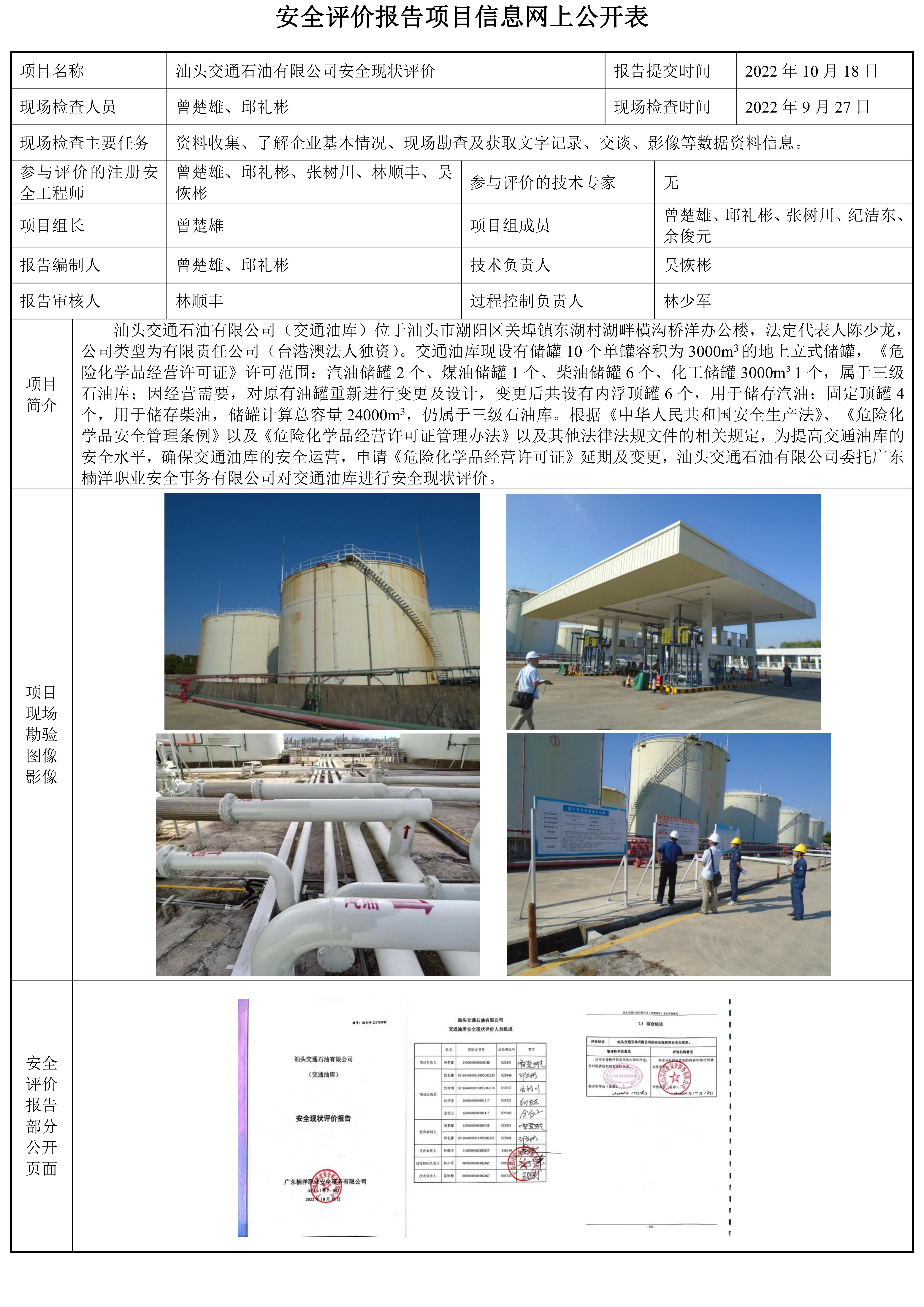 汕头交通石油有限公司(交通油库)安全现状评价报告