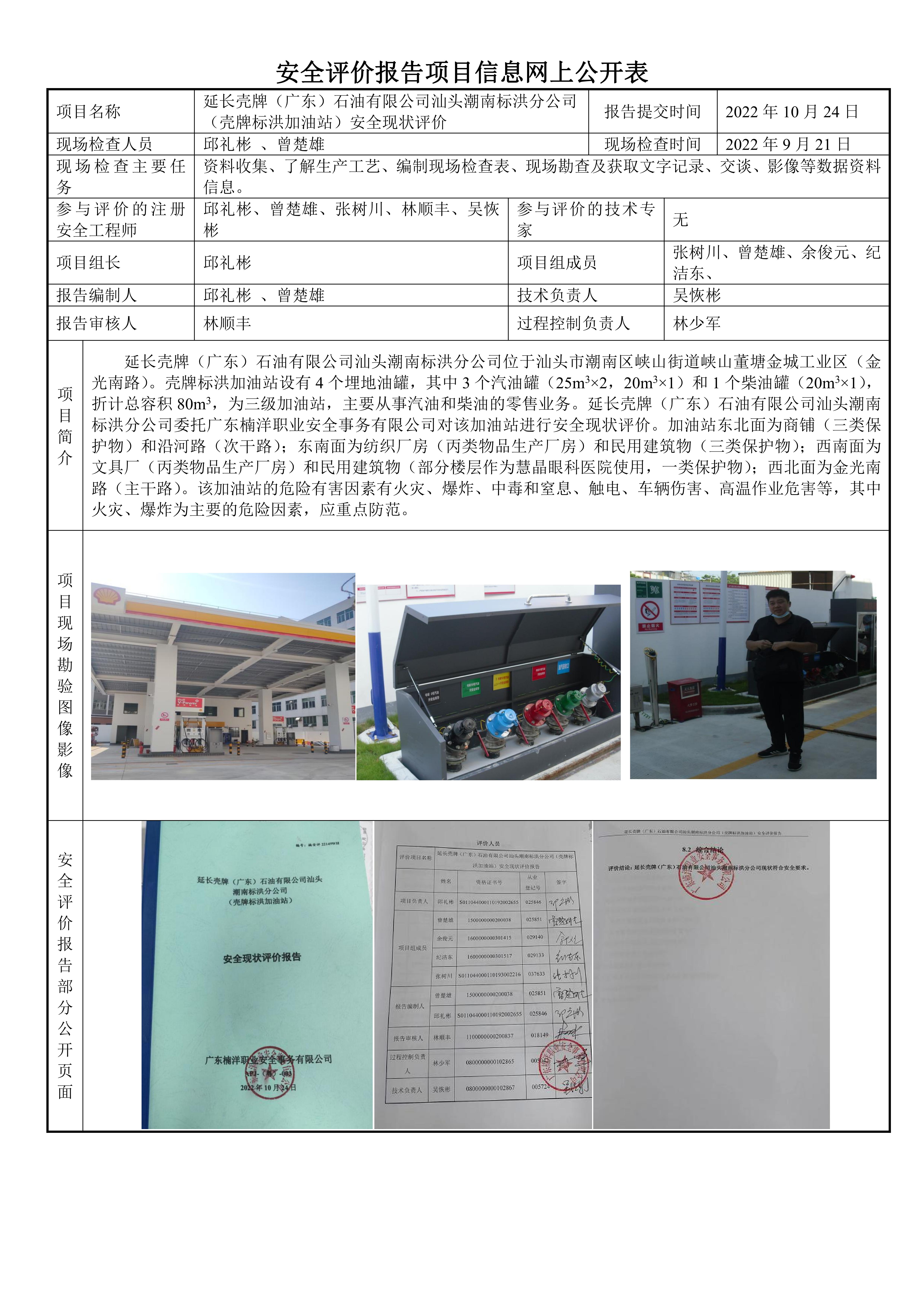 延长壳牌(广东)石油有限公司汕头潮南标洪分公司(壳牌标洪加油站)安全现状评价报告