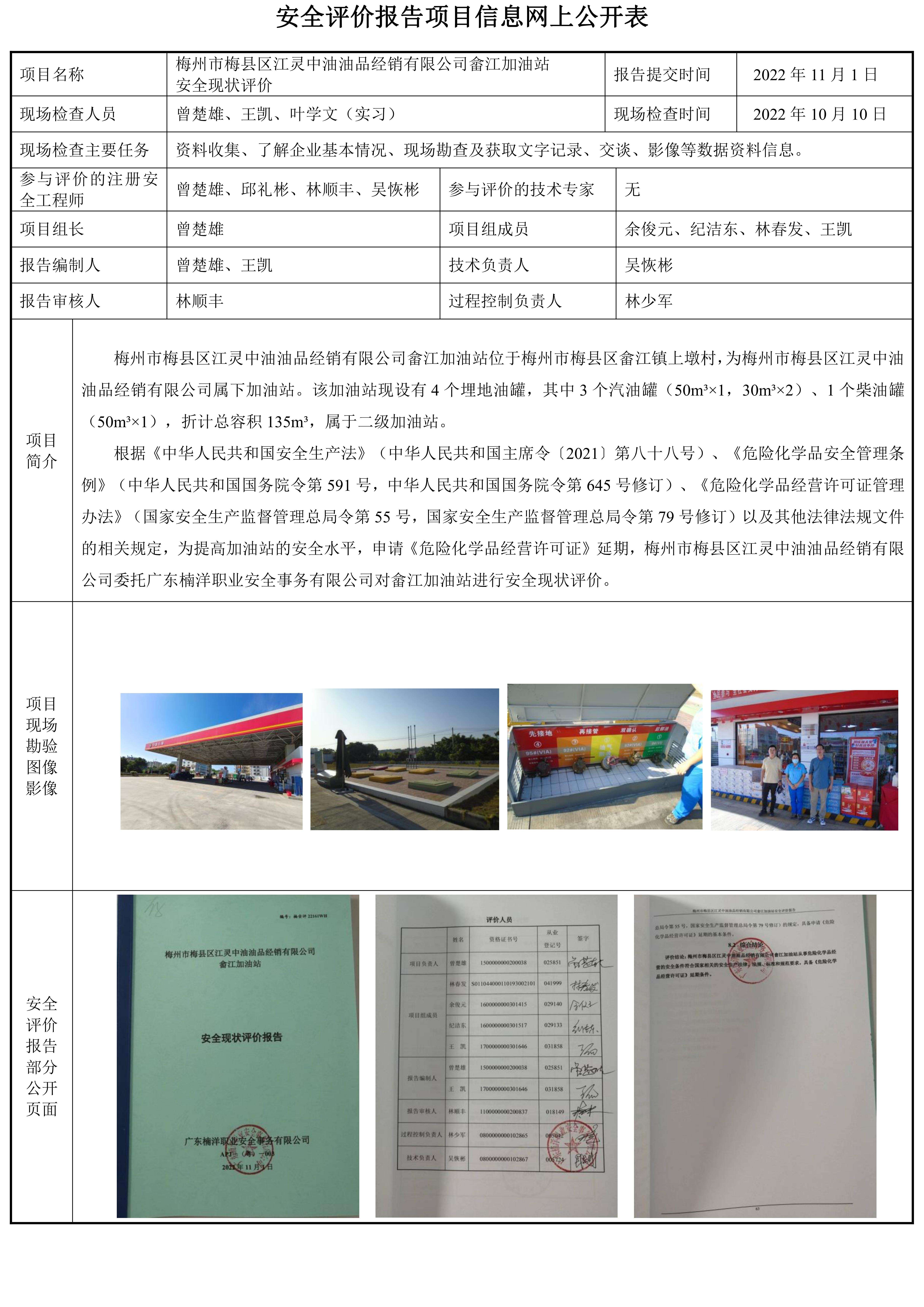 梅州市梅县区江灵中油油品经销有限公司畲江加油站安全现状评价报告