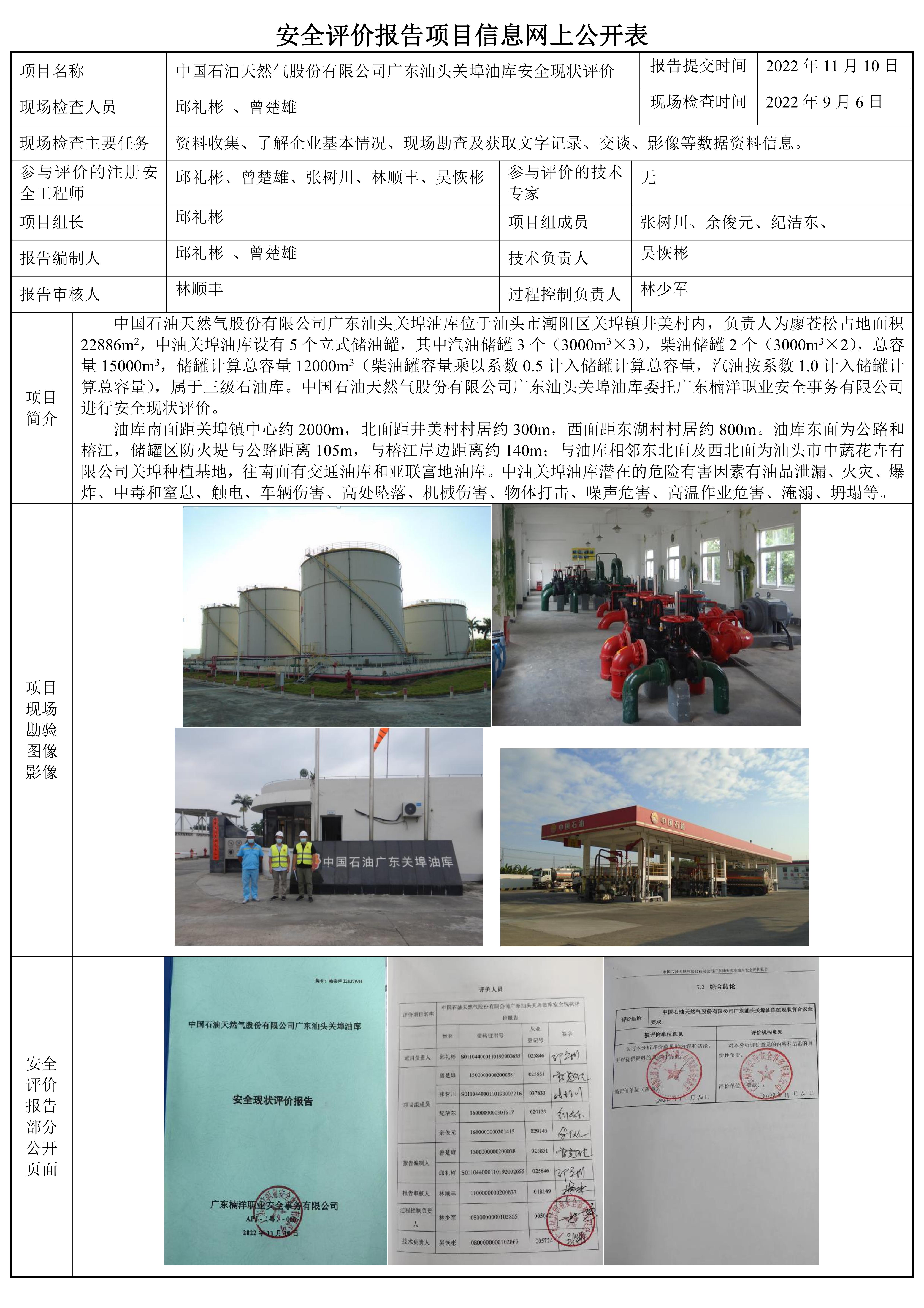 中国石油天然气股份有限公司广东汕头关埠油库安全现状评价报告