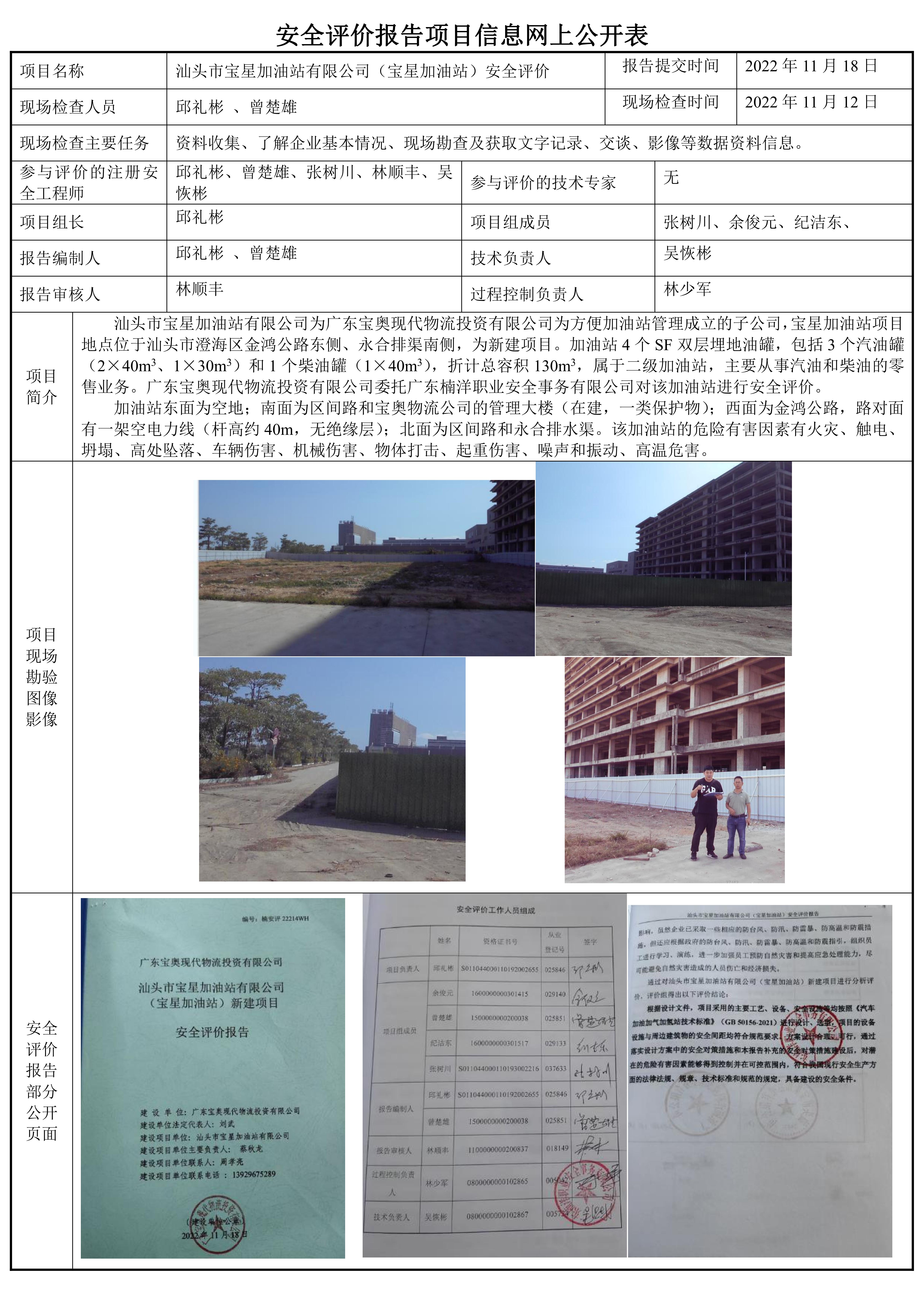 广东宝奥现代物流投资有限公司汕头市宝星加油站有限公司(宝星加油站)新建项目安全评价报告