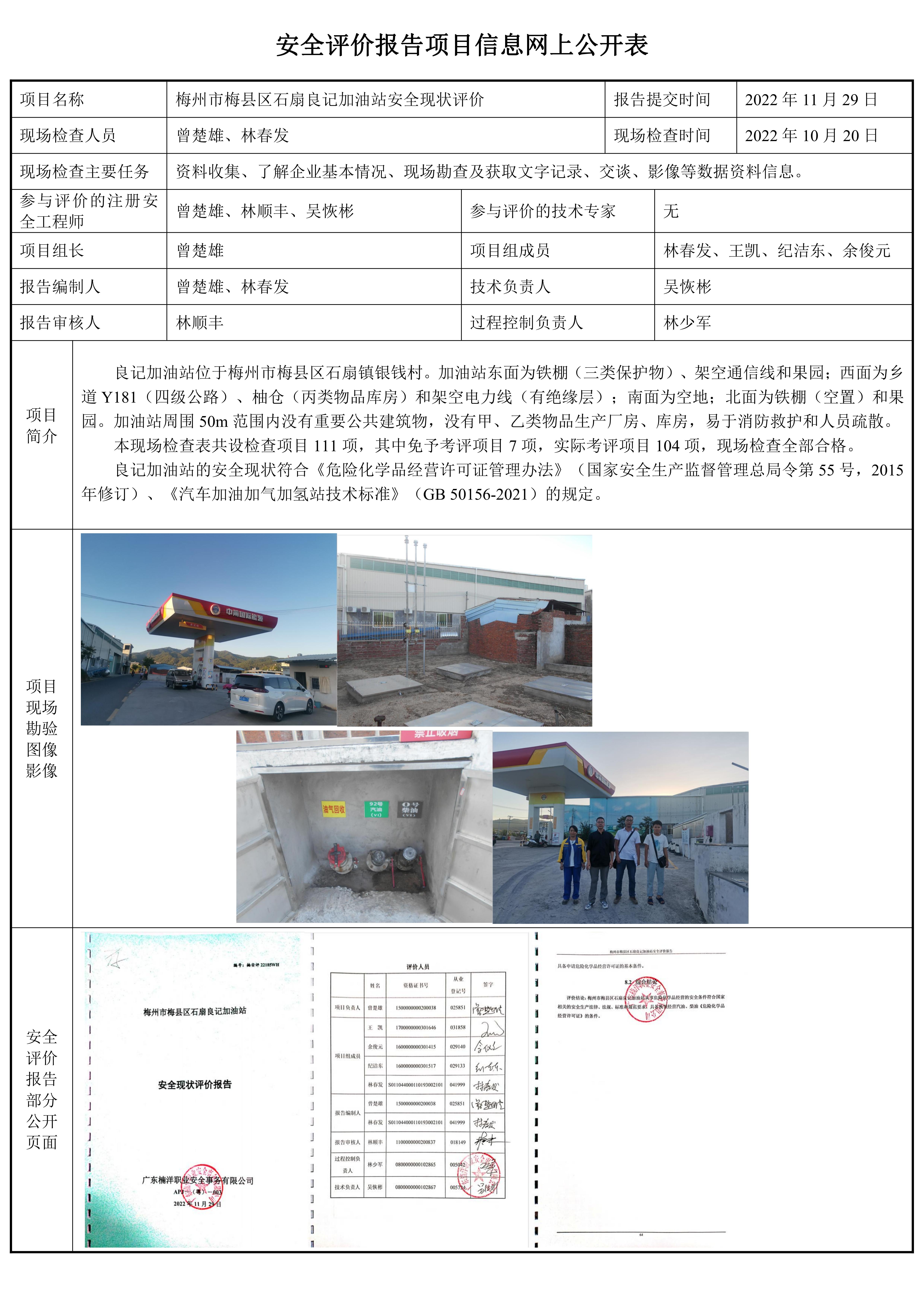 梅州市梅县区石扇良记加油站安全现状评价报告