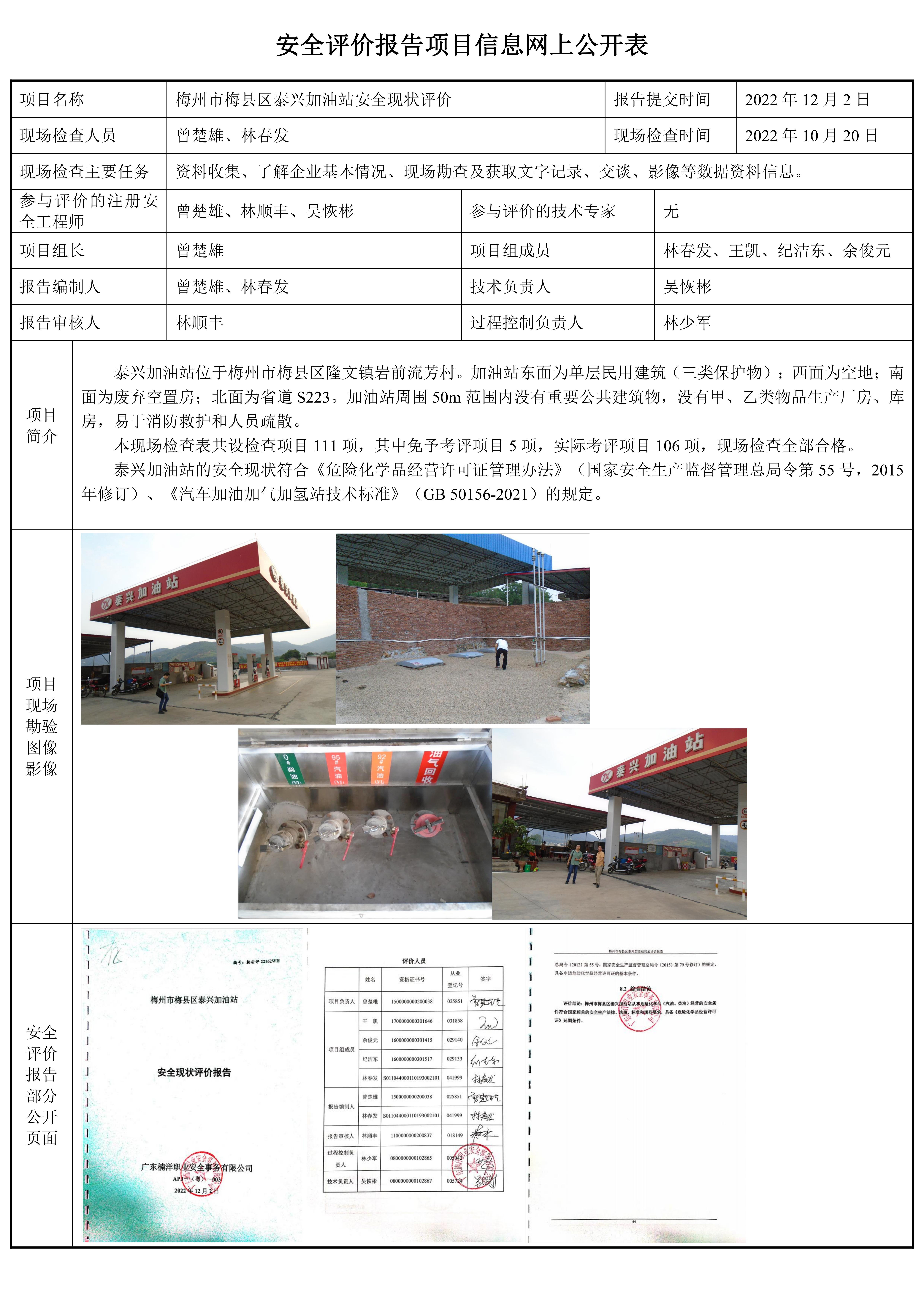 梅州市梅县区泰兴加油站安全现状评价报告