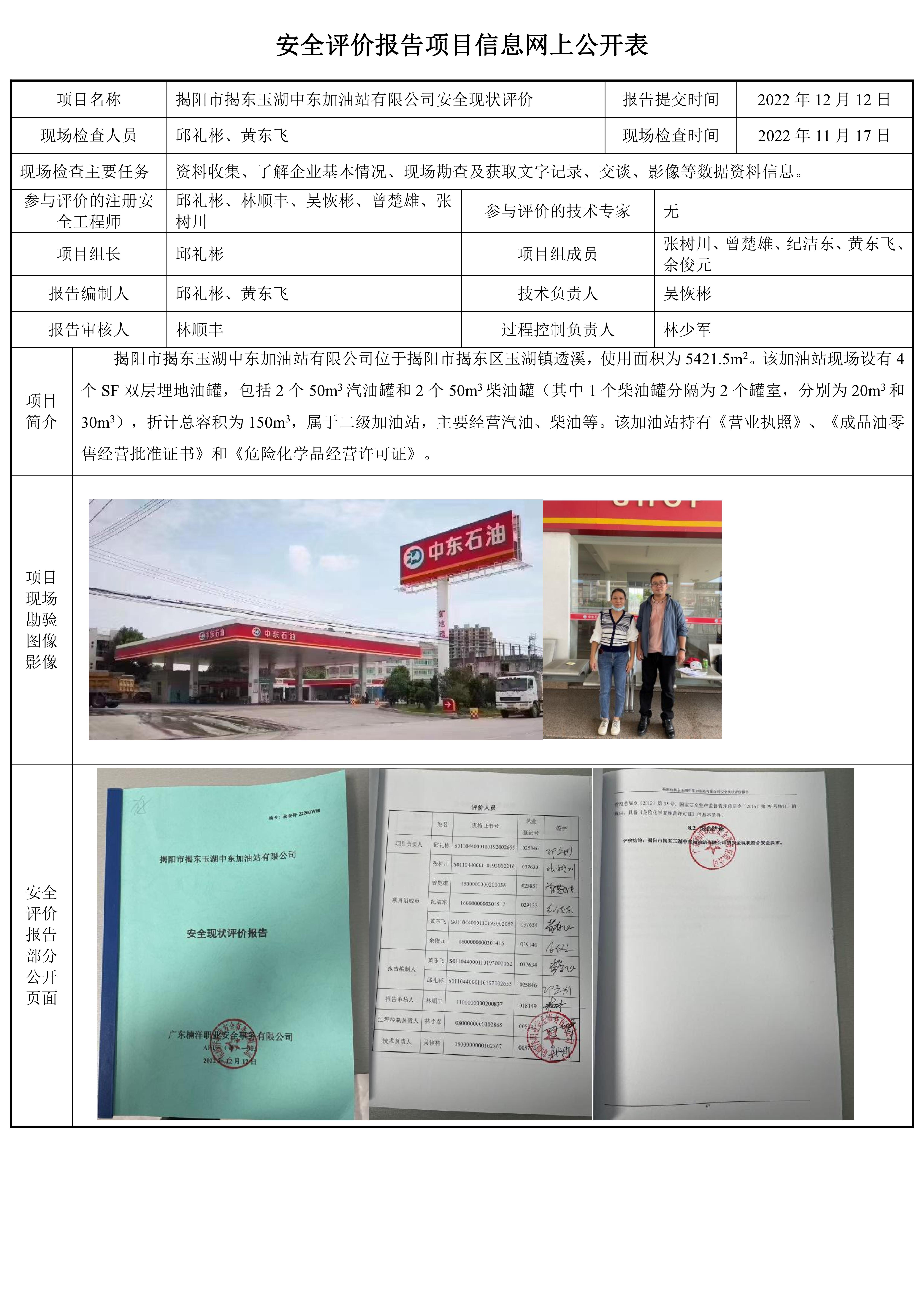 揭阳市揭东玉湖中东加油站有限公司安全现状评价报告