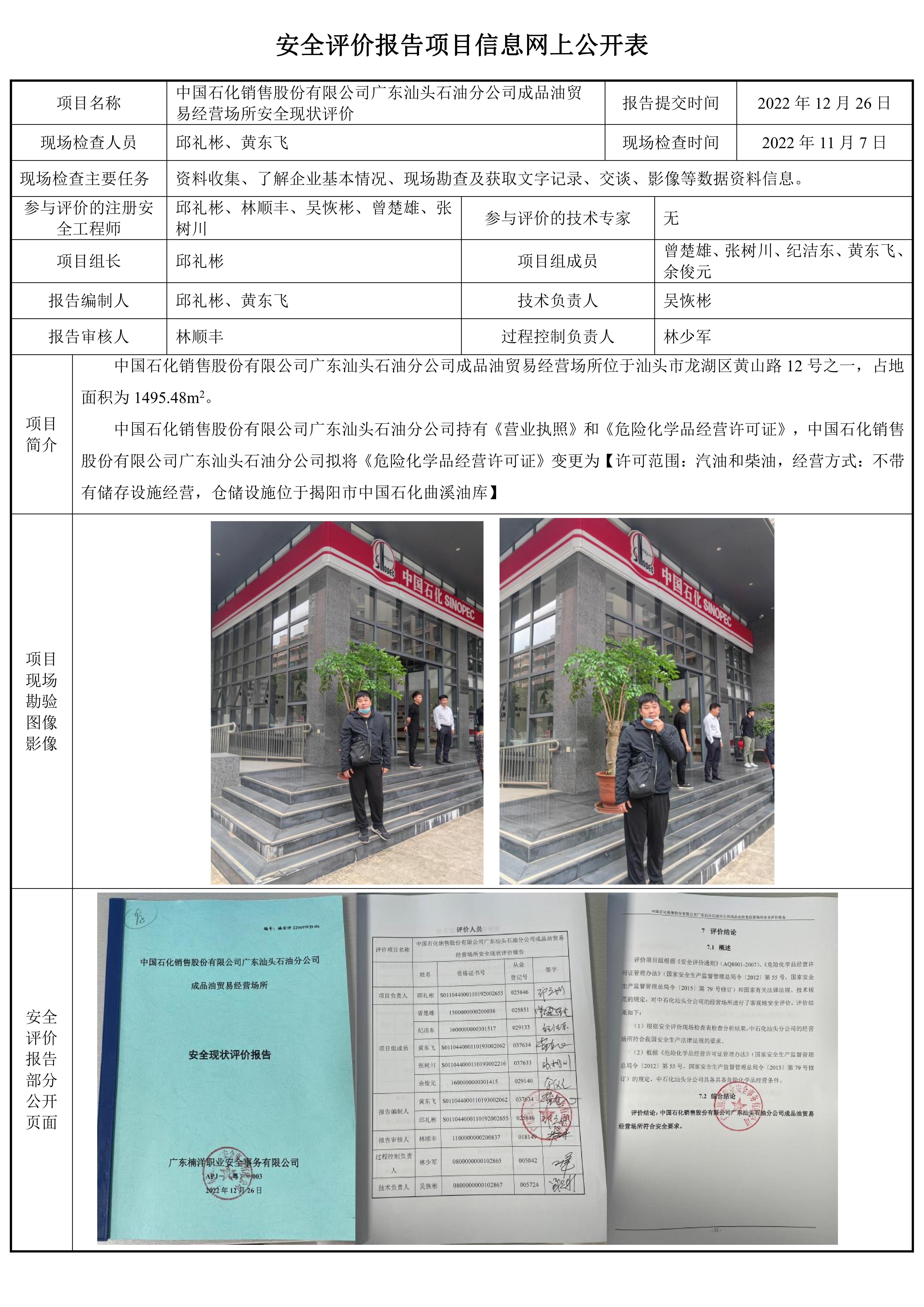 中国石化销售股份有限公司广东汕头石油分公司成品油贸易经营场所安全现状评价报告
