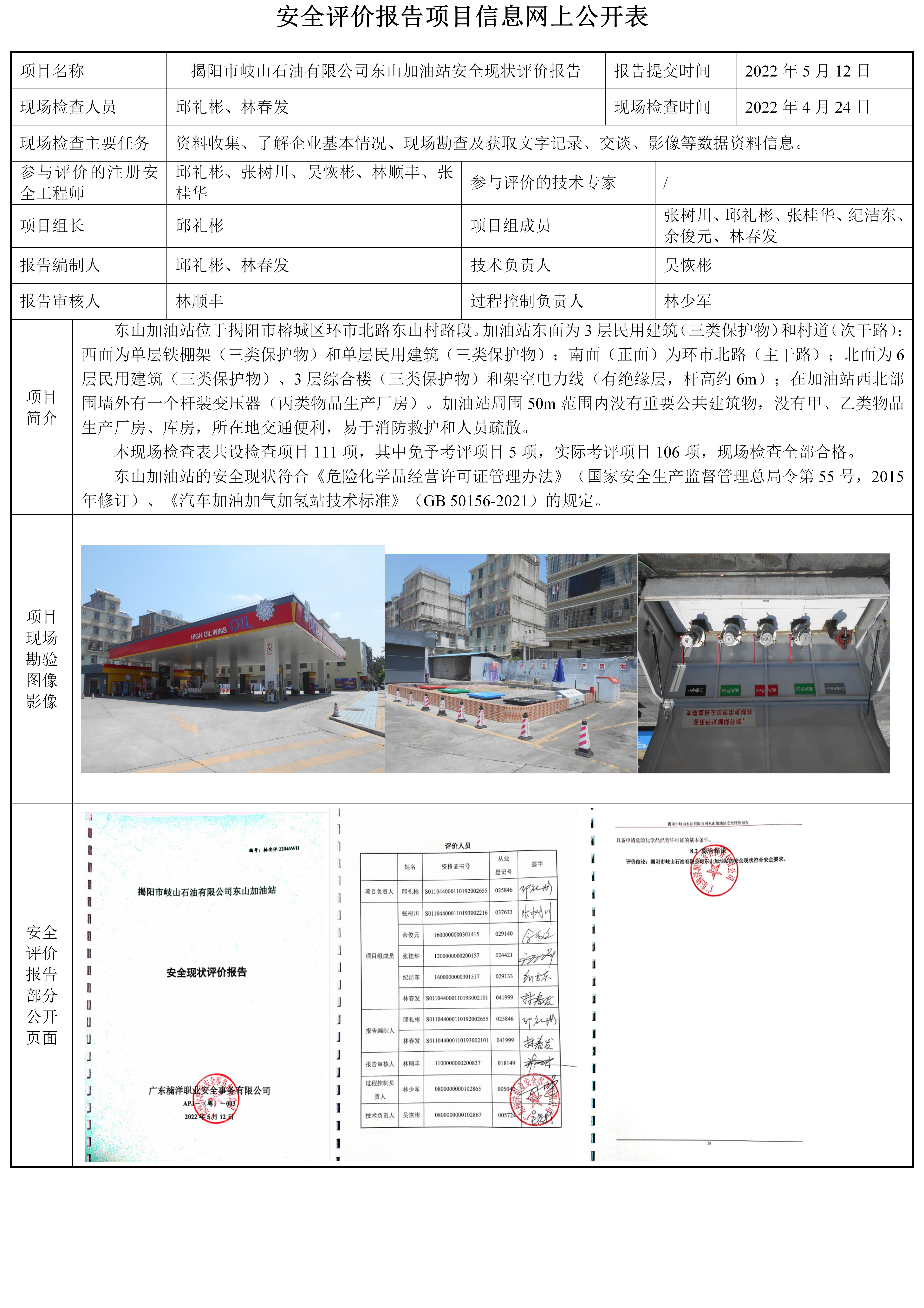 揭阳市岐山石油有限公司东山加油站安全现状评价