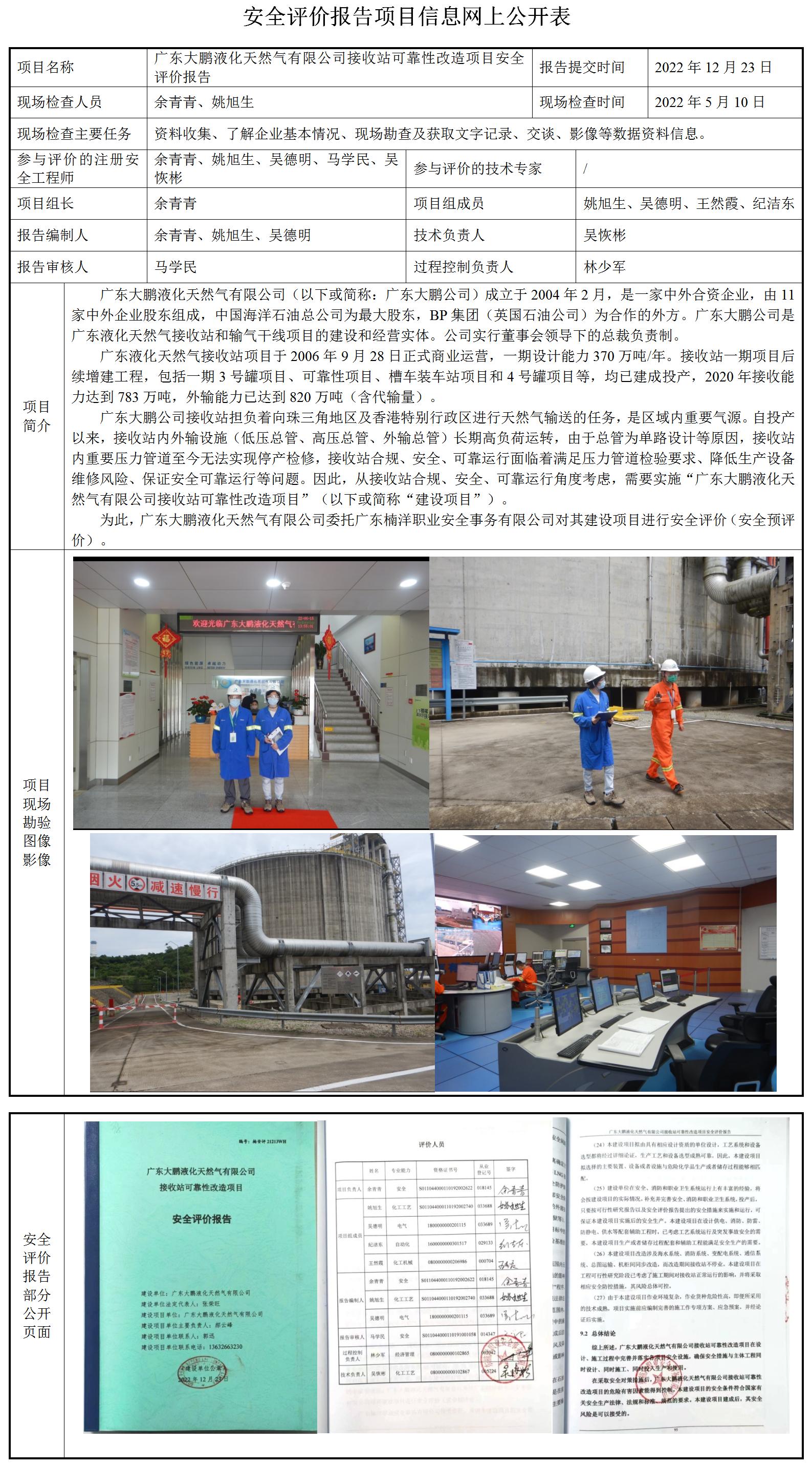 广东大鹏液化天然气有限公司接收站可靠性改造项目安全评价