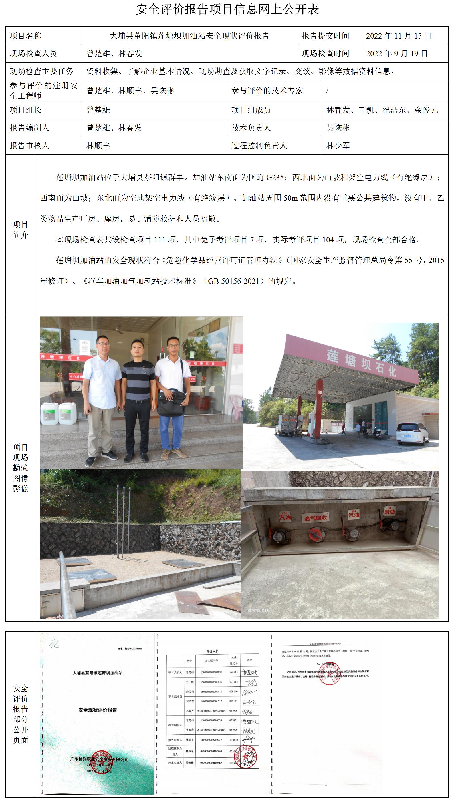 大埔县茶阳镇莲塘坝加油站安全现状评价