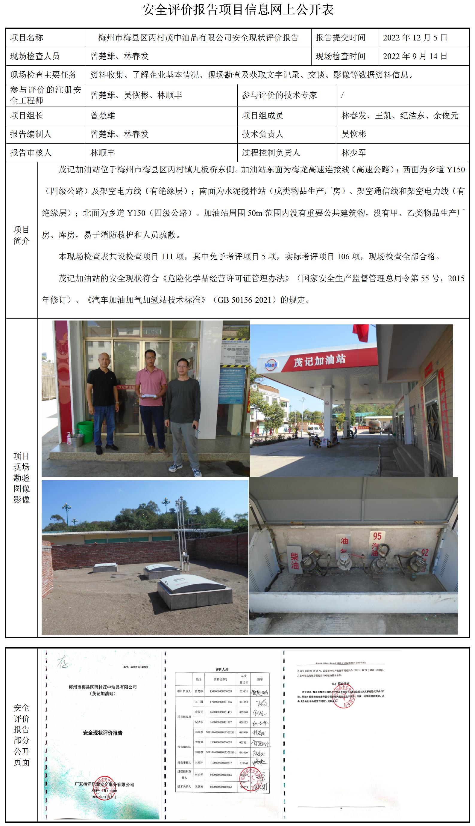 梅州市梅县区丙村茂中油品有限公司(茂记加油站)安全现状评价