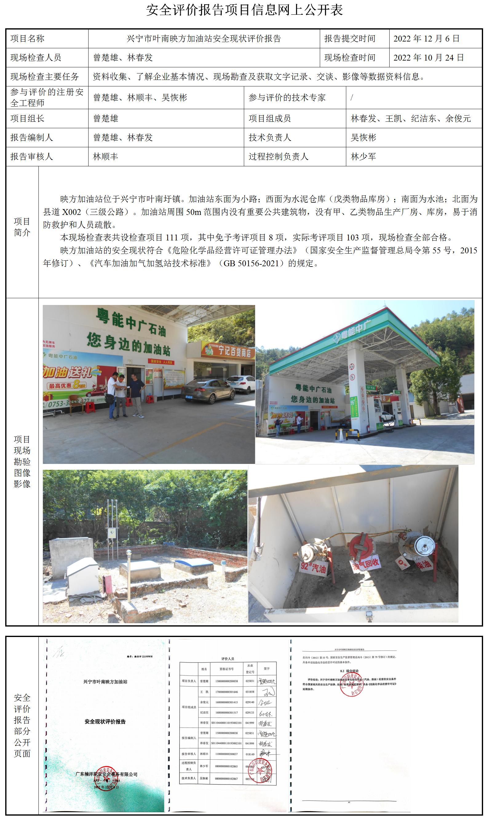 兴宁市叶南映方加油站安全现状评价