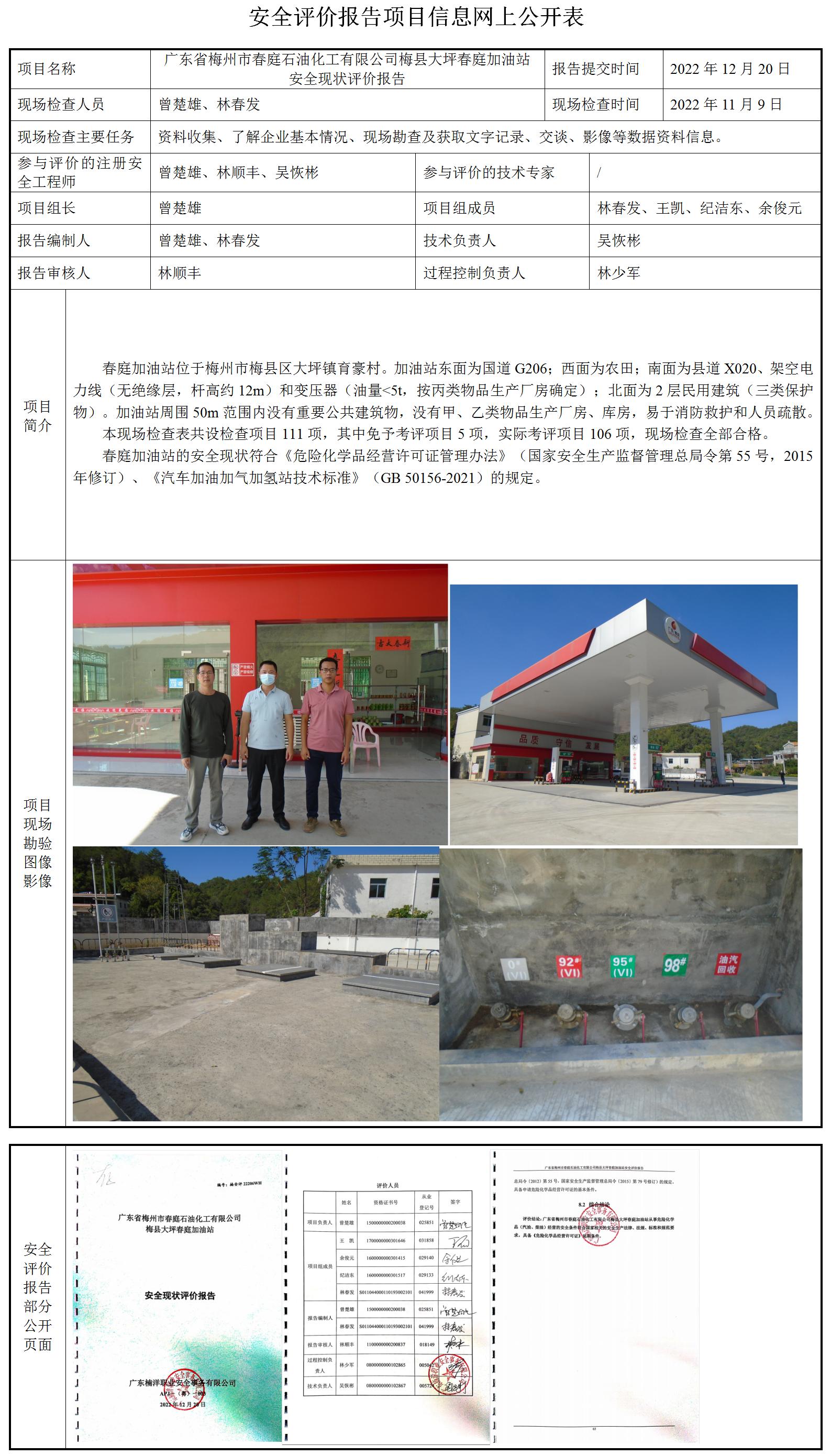 广东省梅州市春庭石油化工有限公司梅县大坪春庭加油站安全现状评价