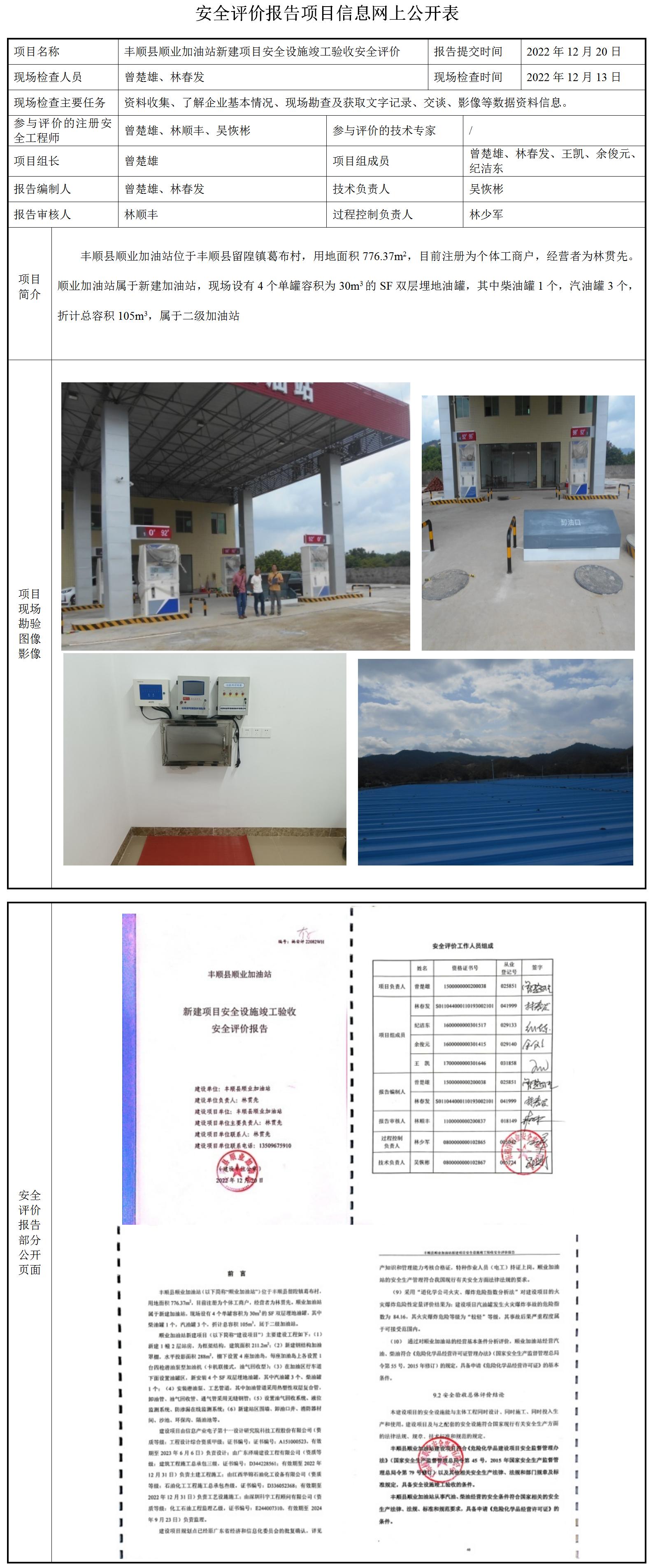 丰顺县顺业加油站新建项目安全设施竣工验收安全评价