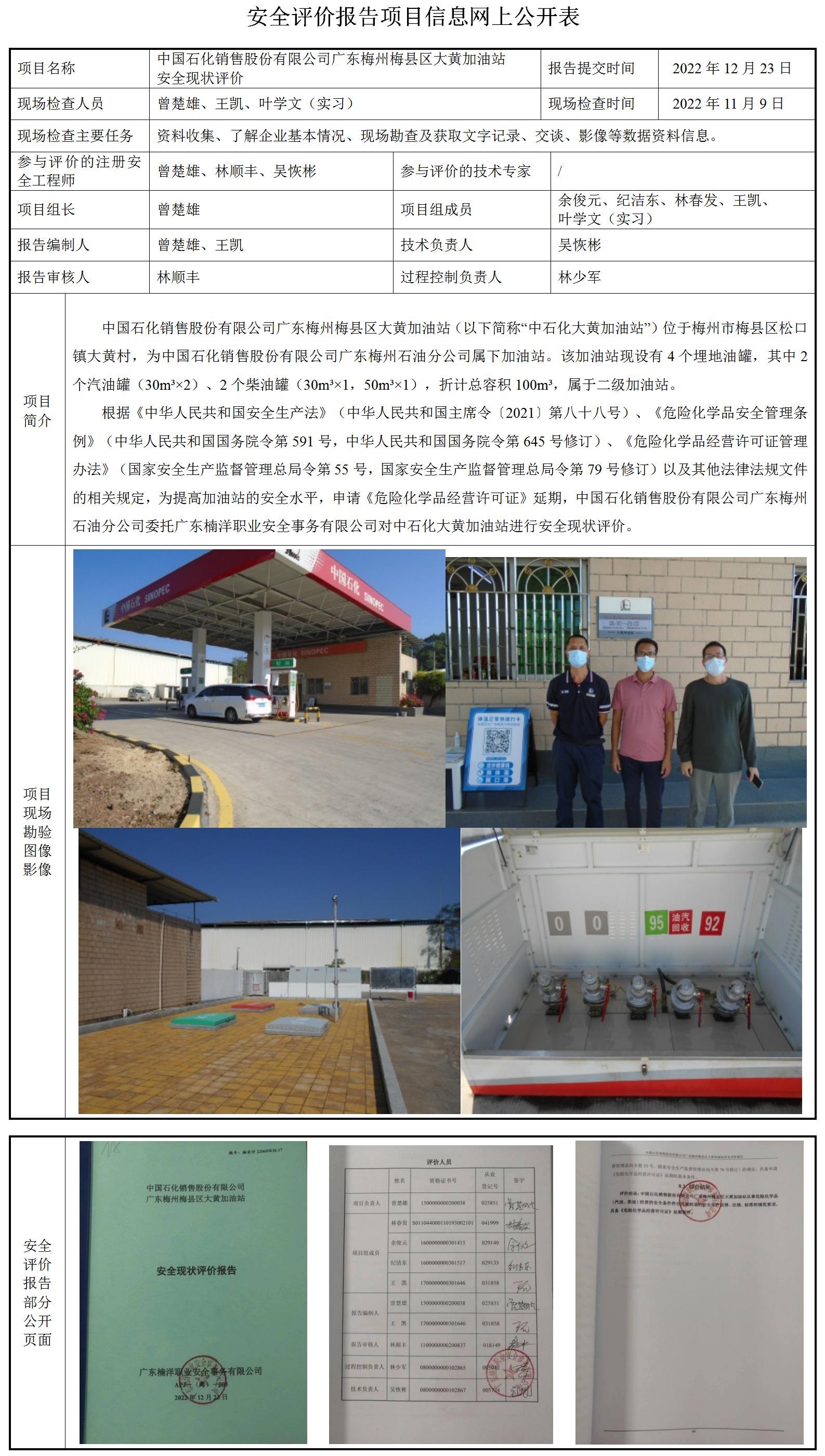 中国石化销售股份有限公司广东梅州梅县区大黄加油站安全现状评价