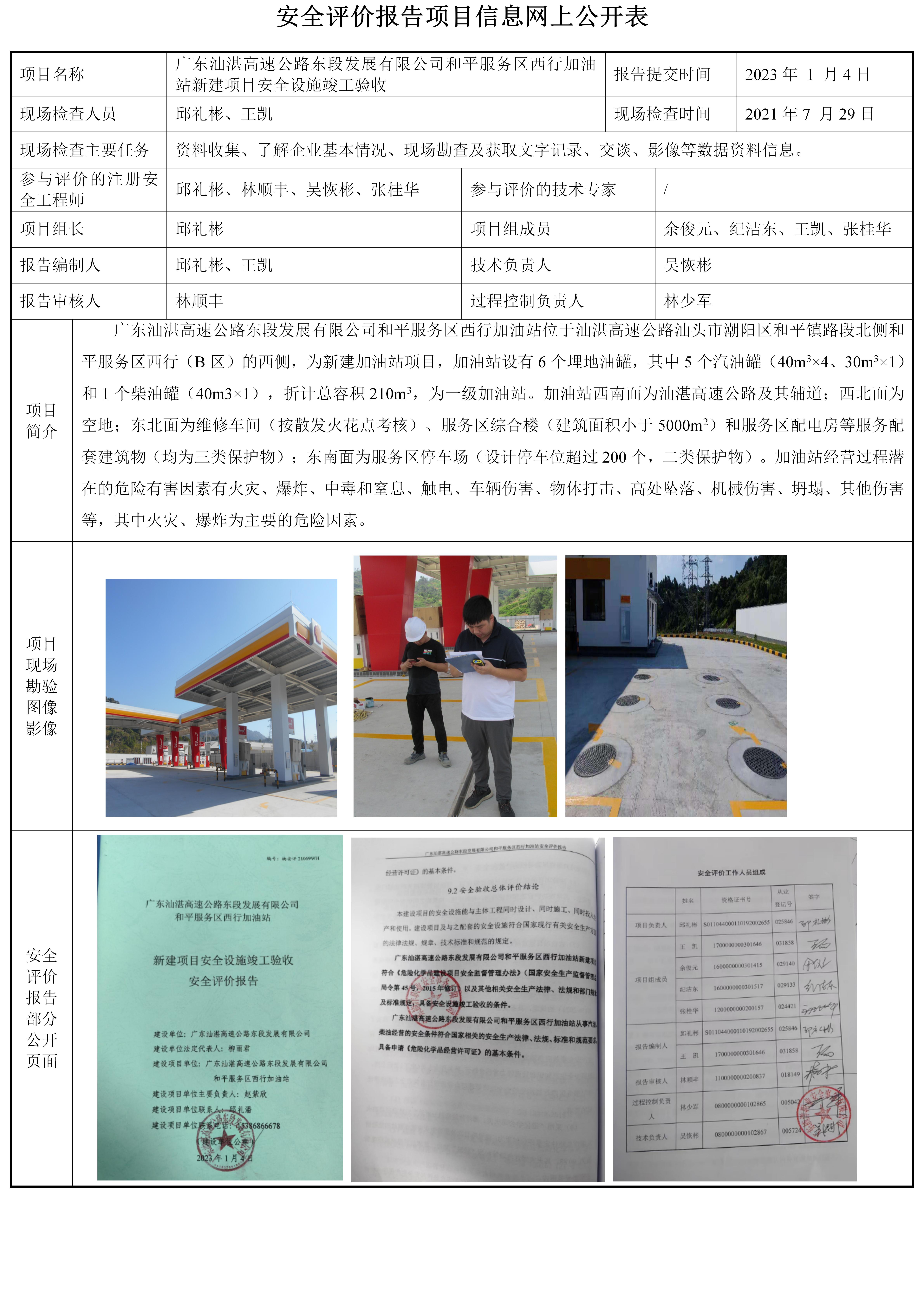 广东汕湛高速公路东段发展有限公司和平服务区西行加油站新建项目安全设施竣工验收安全评价