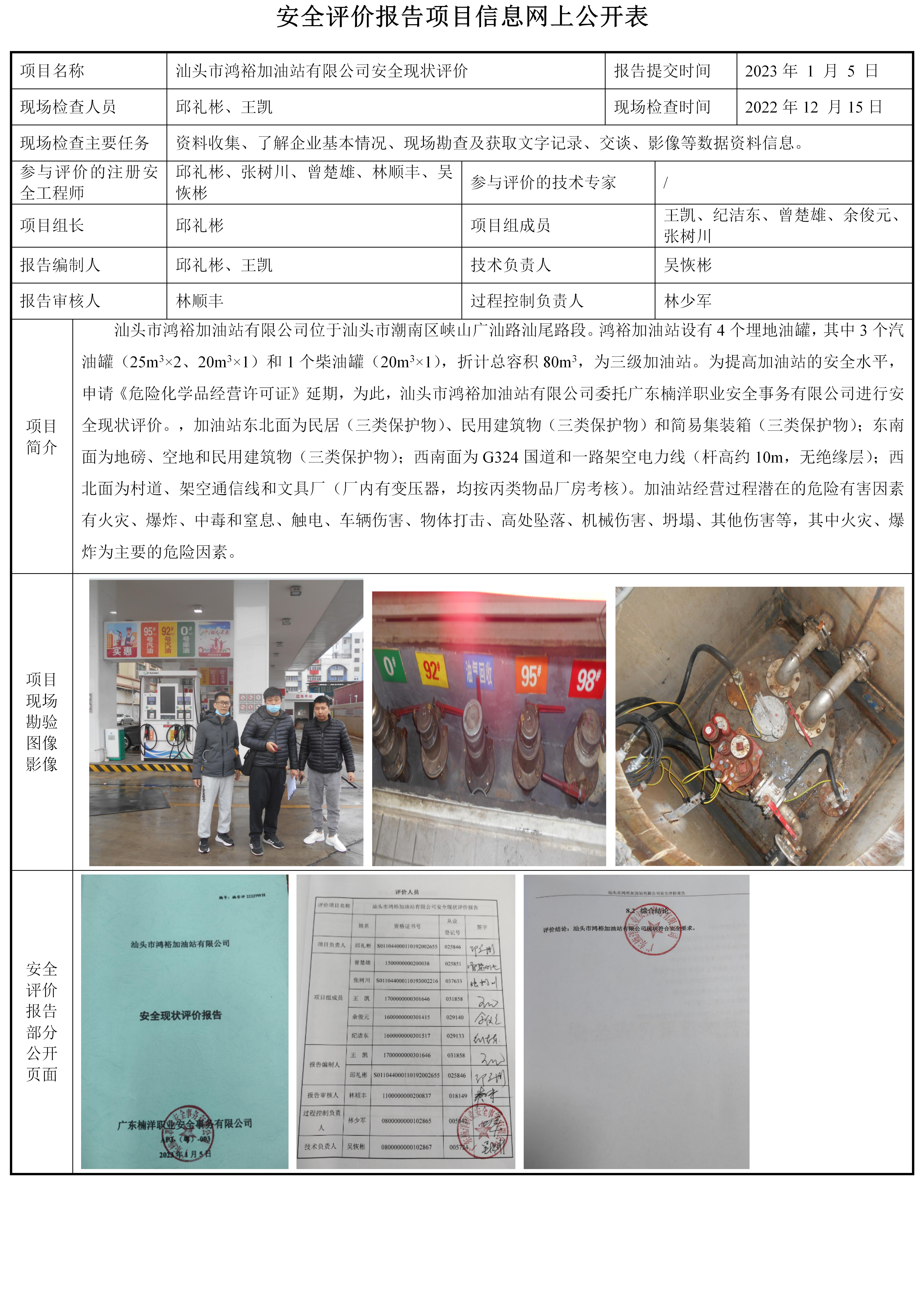 汕头市鸿裕加油站有限公司安全现状评价
