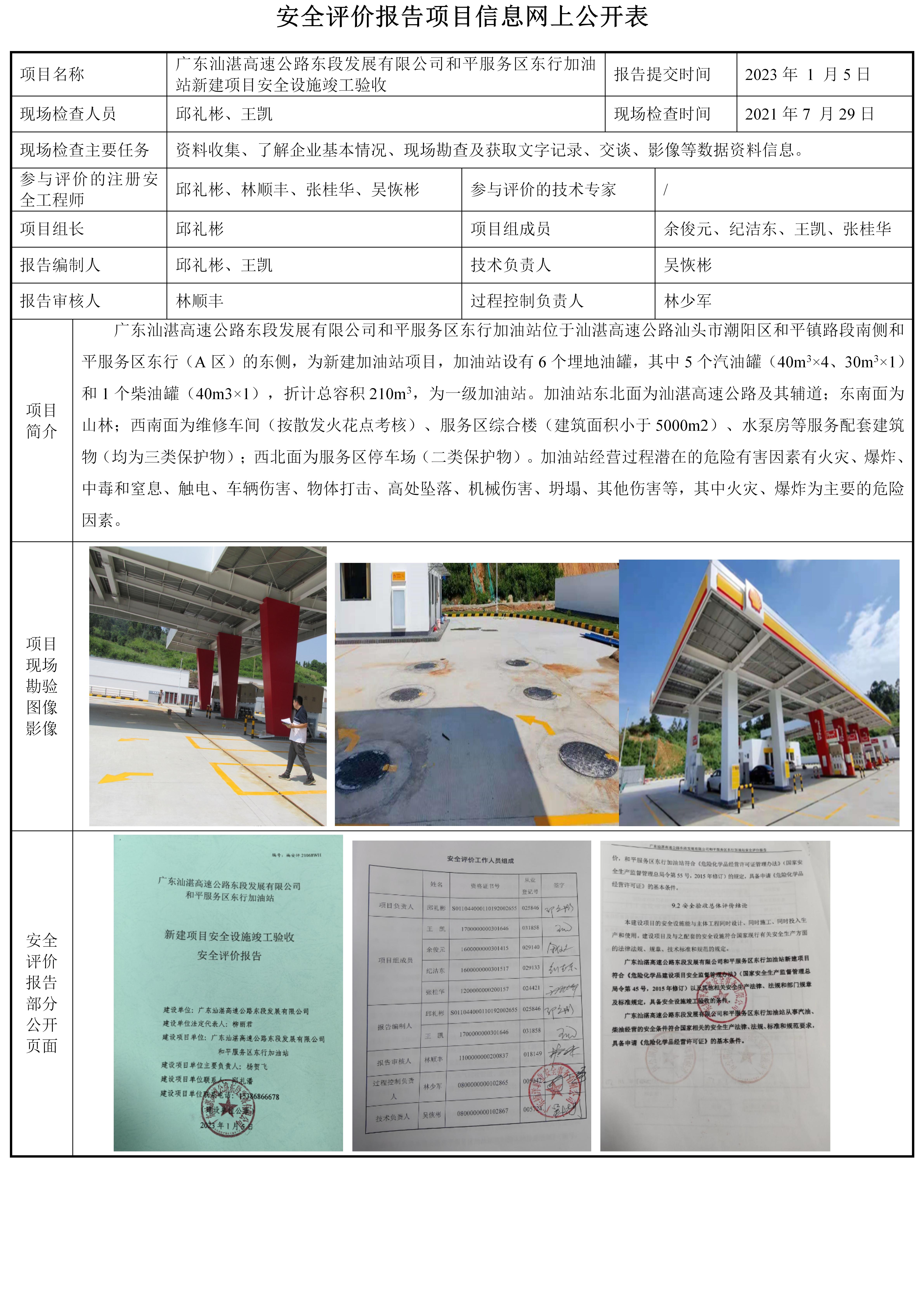 广东汕湛高速公路东段发展有限公司和平服务区东行加油站新建项目安全设施竣工验收安全评价