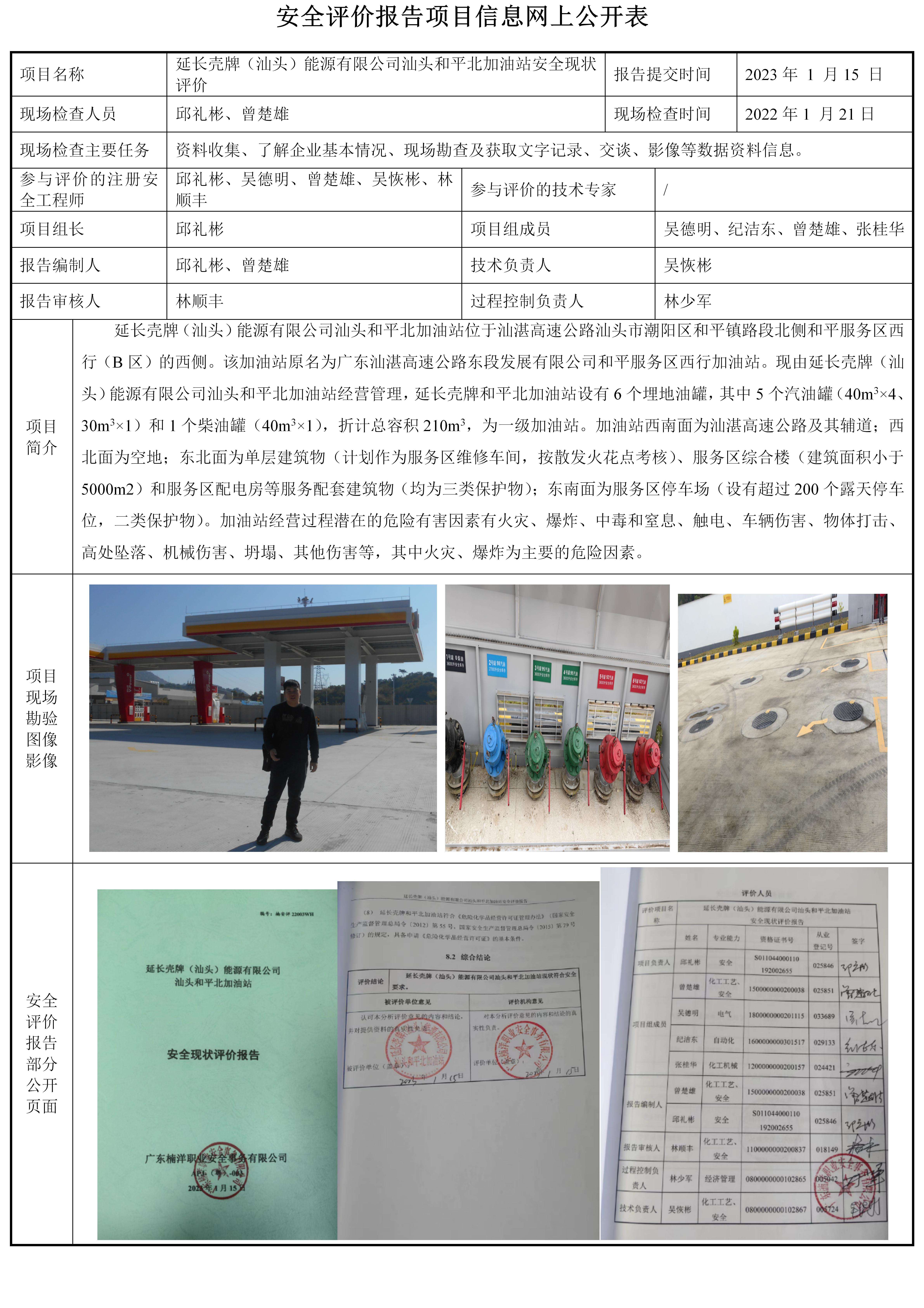 延长壳牌(汕头)能源有限公司汕头和平北加油站安全现状评价