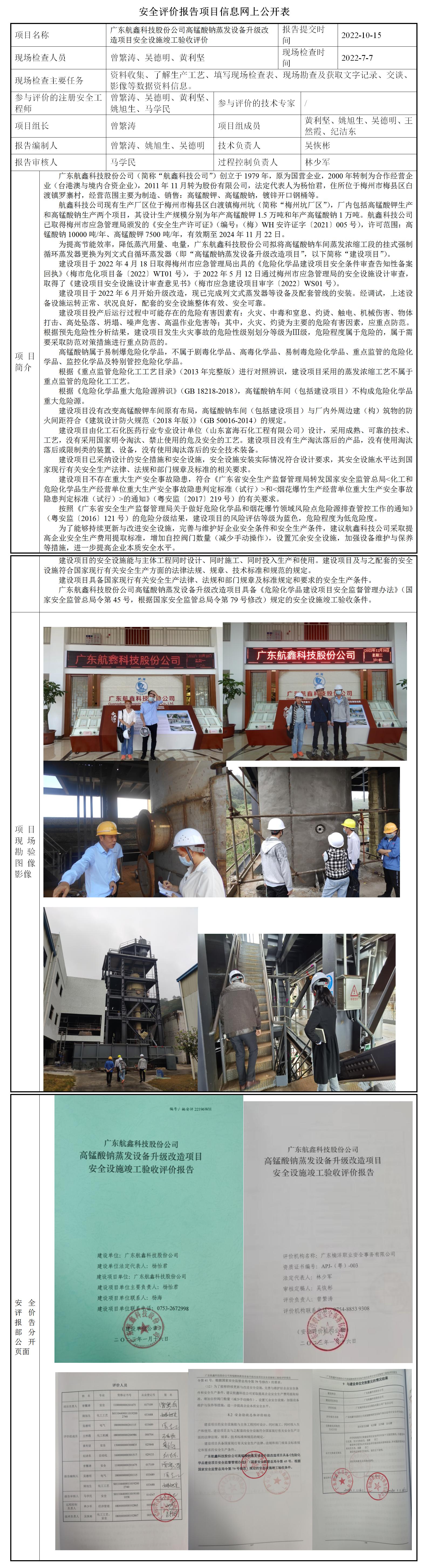 广东航鑫科技股份公司高锰酸钠蒸发设备升级改造项目安全设施竣工验收评价