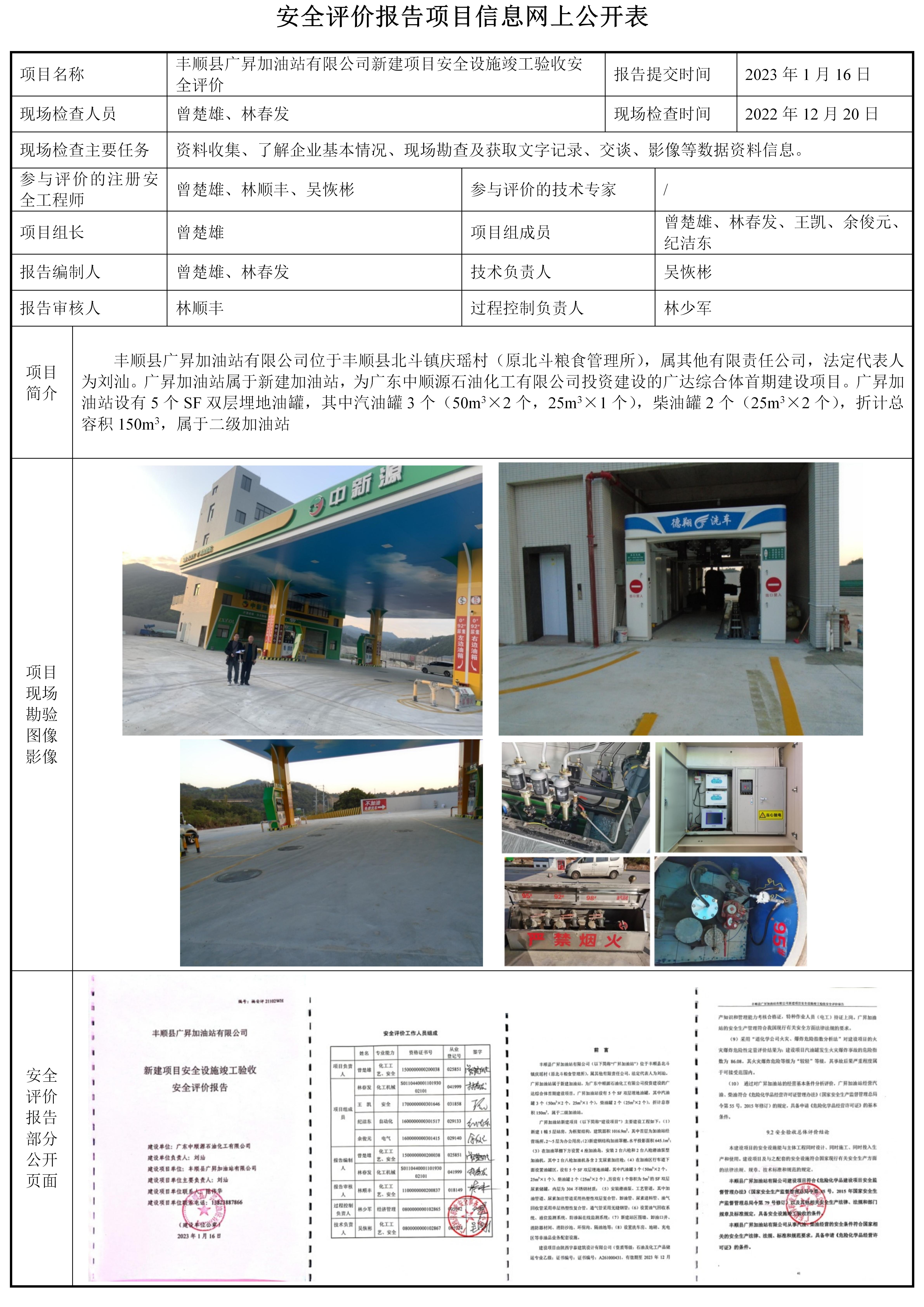 丰顺县广昇加油站有限公司新建项目安全设施竣工验收安全评价