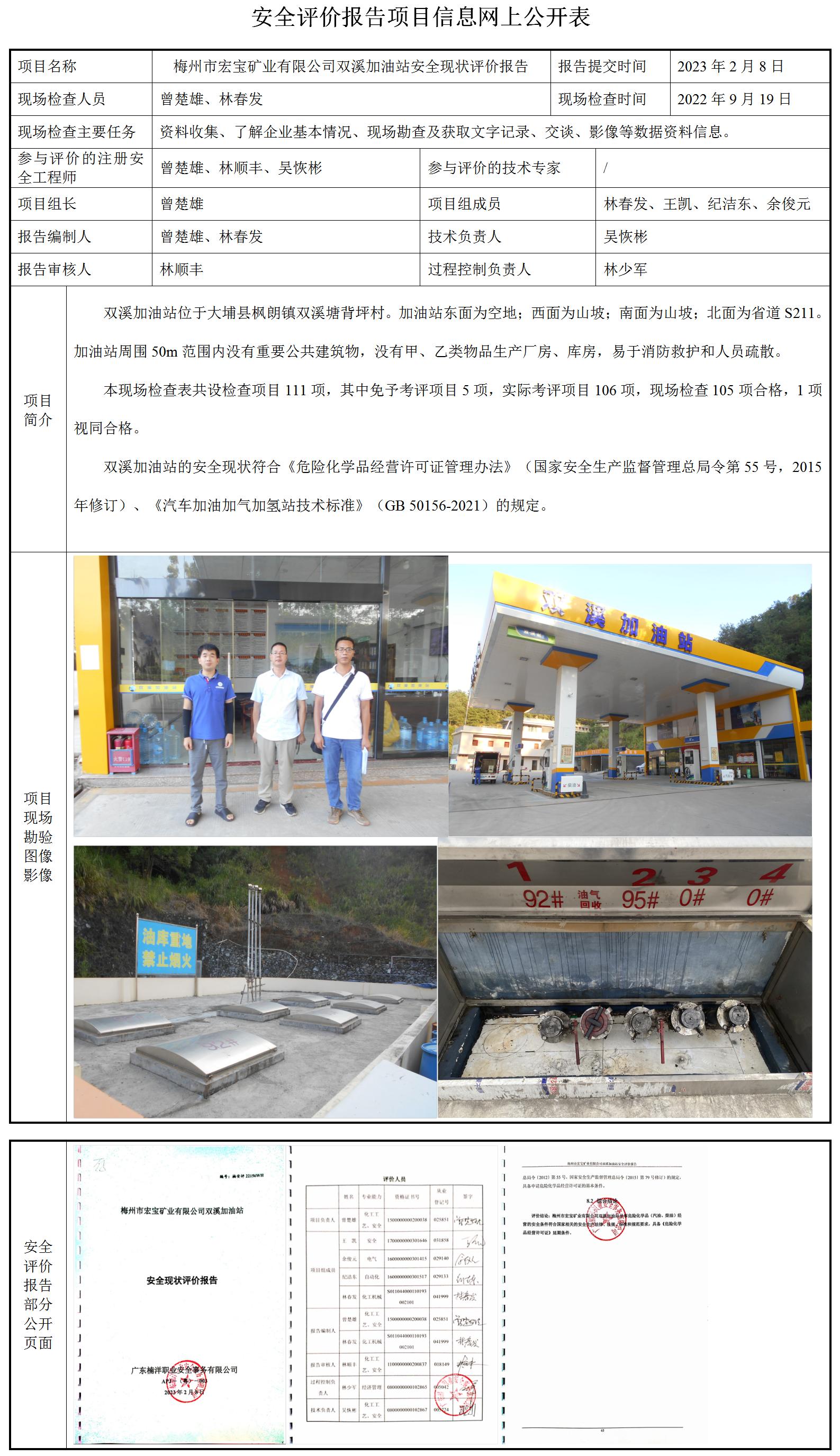 梅州市宏宝矿业有限公司双溪加油站安全现状评价