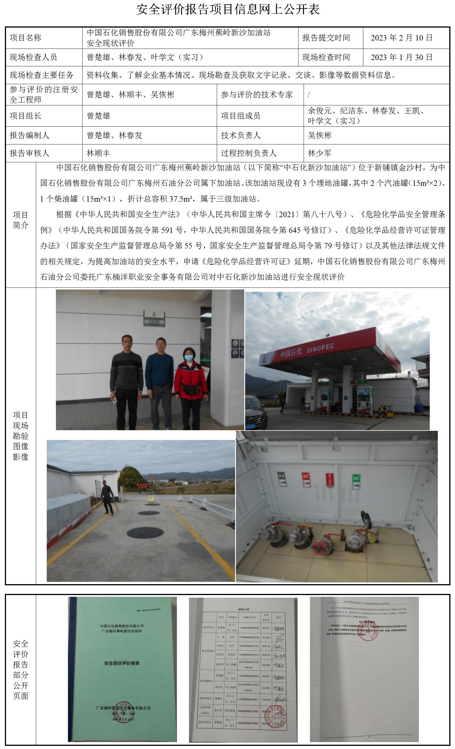 中国石化销售股份有限公司广东梅州蕉岭新沙加油站安全现状评价