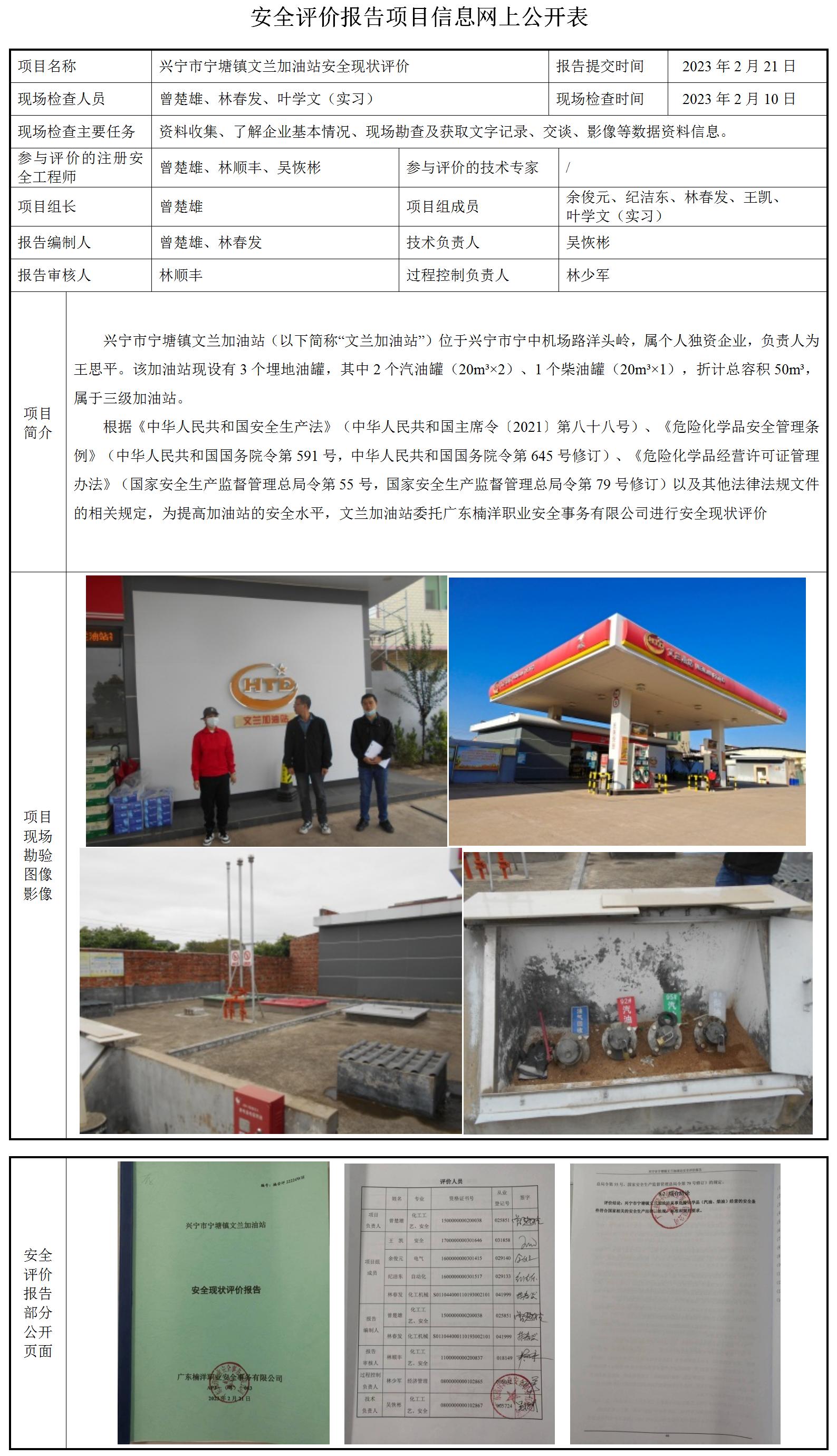 兴宁市宁塘镇文兰加油站安全现状评价