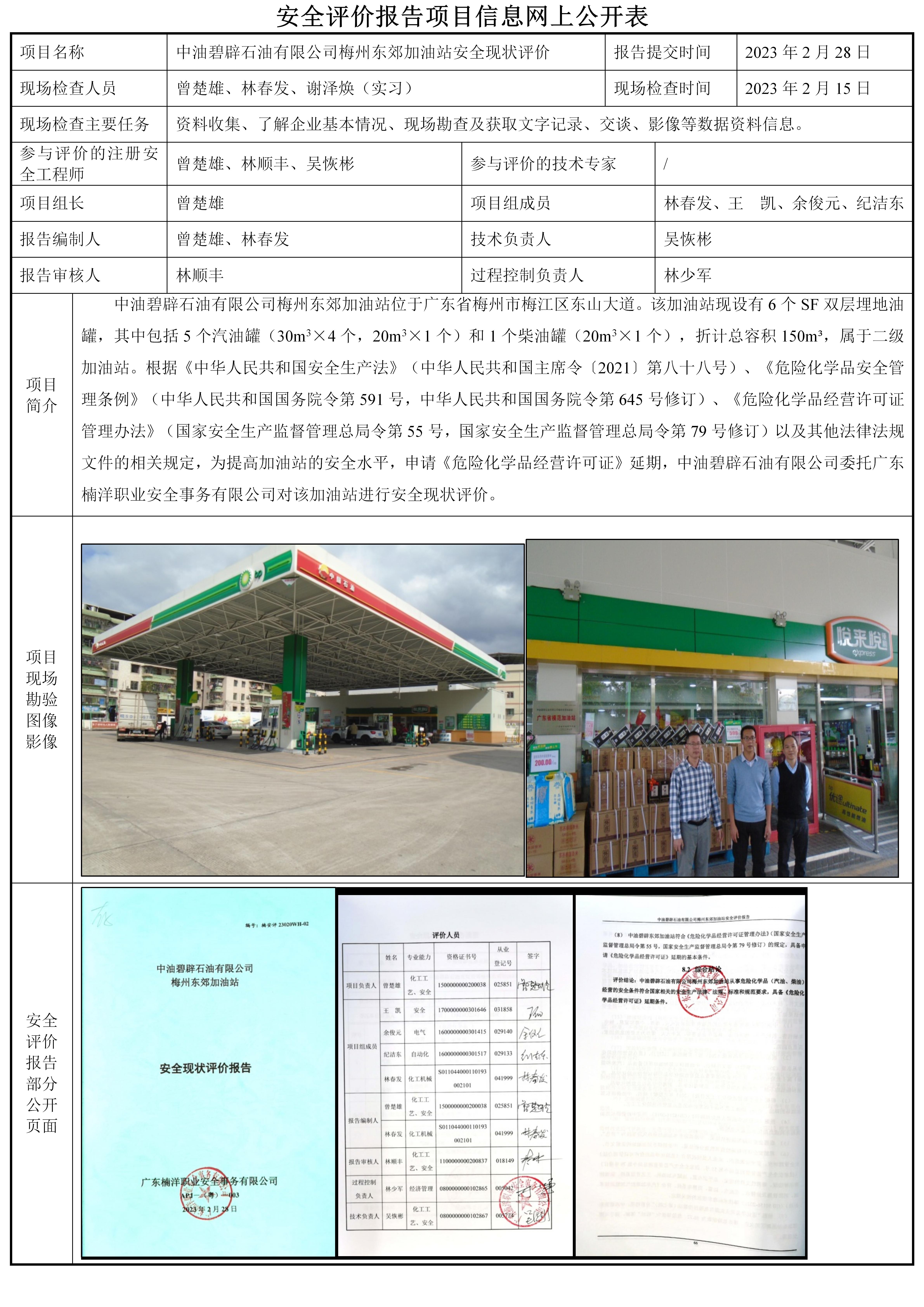 中油碧辟石油有限公司梅州东郊加油站安全现状评价