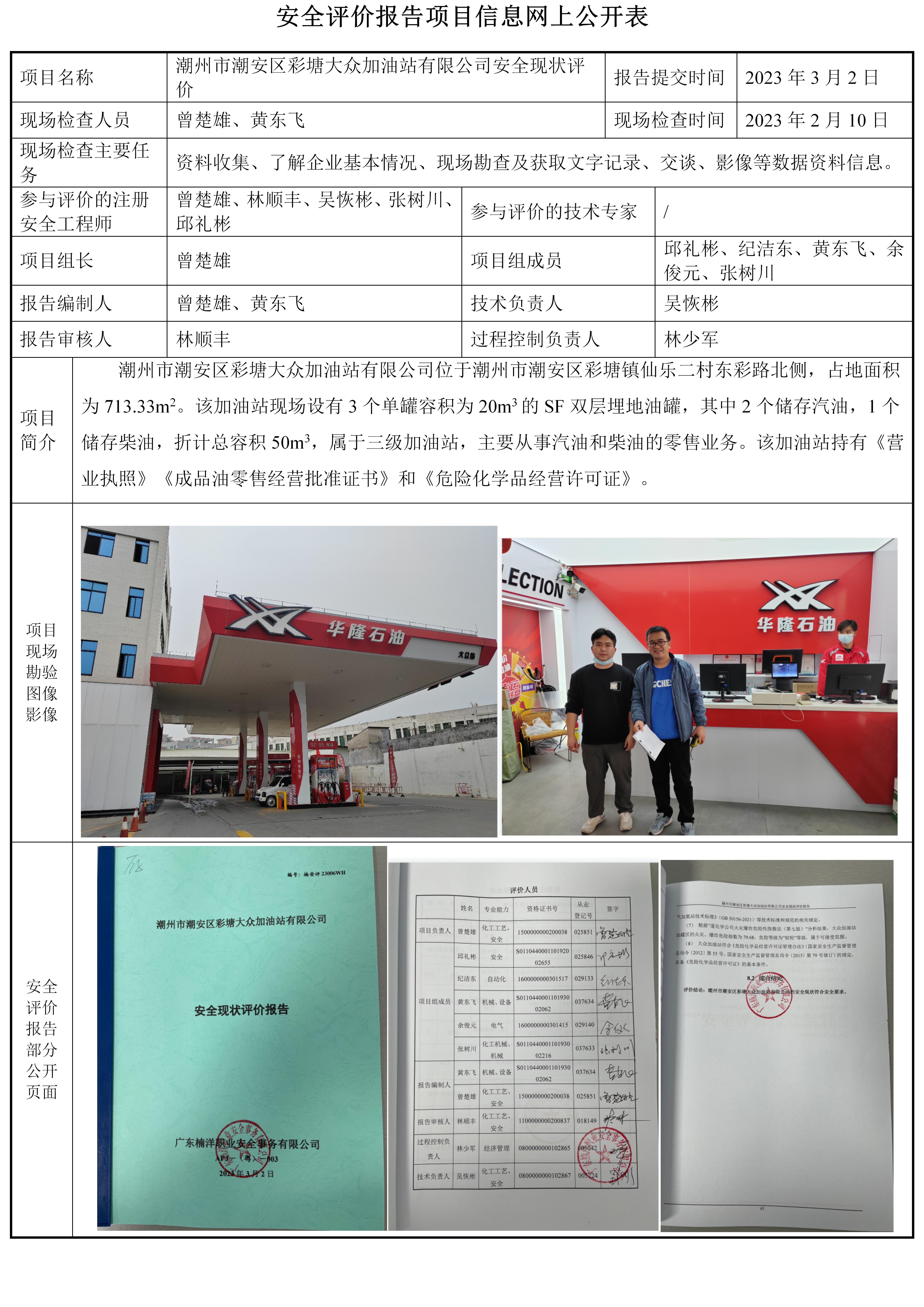 潮州市潮安区彩塘大众加油站有限公司安全现状评价